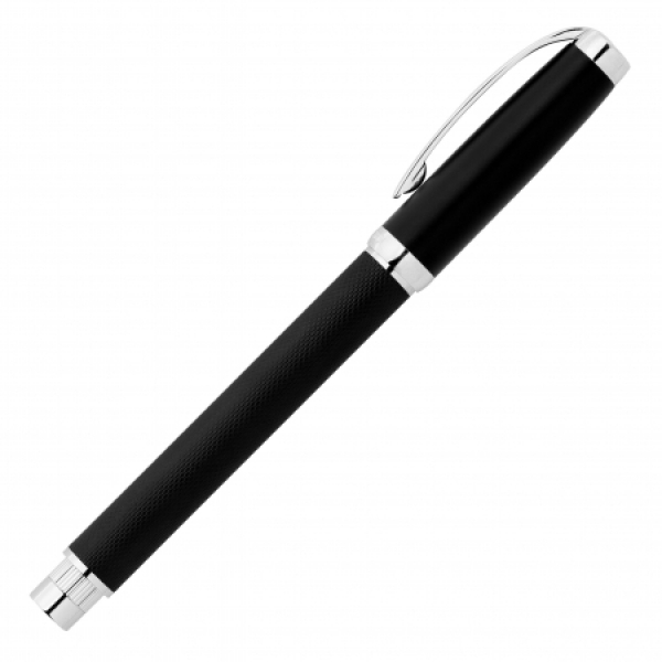 Od delikatnej, matowej, czarnej, lakierowanej nasadki po wygrawerowany korpus w kolorze czarnego diamentu, ozdobiony błyszczącymi, chromowanymi lamówkami, długopis Myth rollerball jest pełen kontrastów, co nadaje mu luksusowy i nowoczesny wygląd.