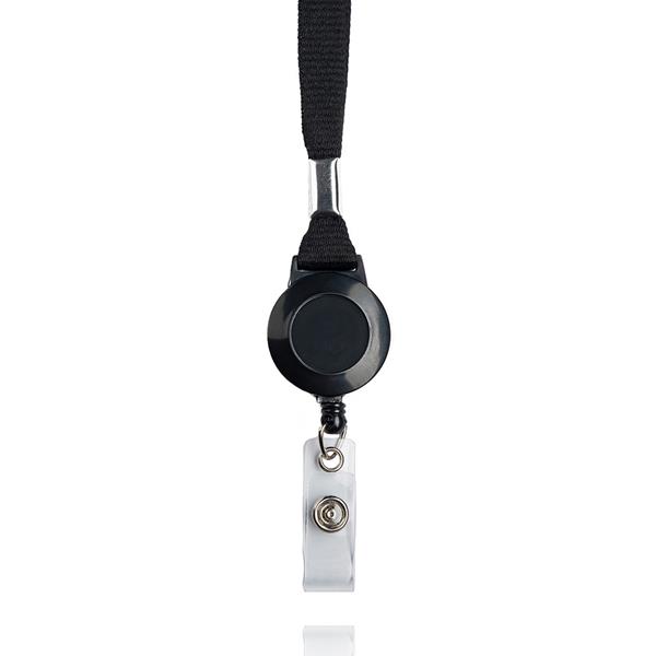Smycz z wysuwanym uchwytem na identyfikator i mechanizmem zapinania np. na bagaż.