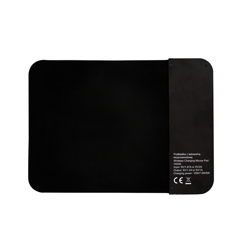 Podkładka pod mysz, bezprzewodowa ładowarka 10W, działa z telefonami posiadającymi możliwość ładowania indukcyjnego, moc ładowania bezprzewodowego: 10W/7.5W/5W, wejście micro USB: 9V/1.67A lub 5V/2A, wyjście: 9V/1.2A lub 5V/1A, kabel micro USB w komplecie