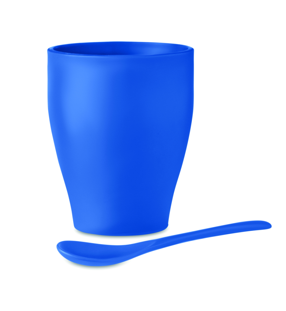 Kubek wielokrotnego użytku z PP z łyżeczką. Pojemność 300 ml.