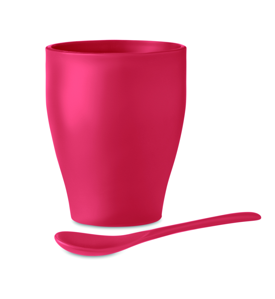 Kubek wielokrotnego użytku z PP z łyżeczką. Pojemność 300 ml.