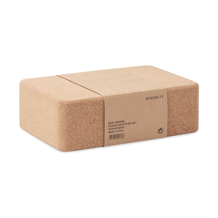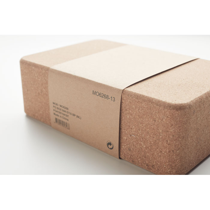 Korkowa kostka do jogi prezentowana w papierowej obwolucie z instrukcją. Wspomaga zakres ruchu poprzez skrócenie dystansu między Tobą a podłogą.