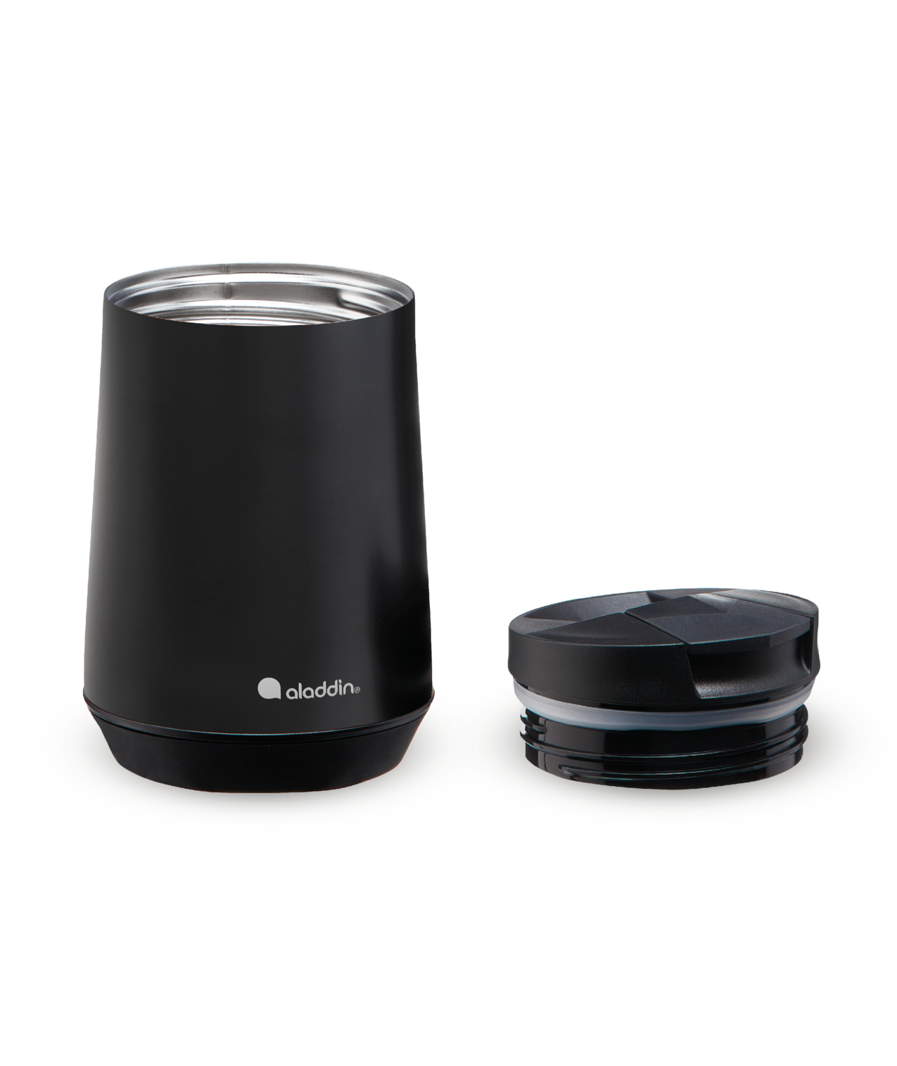 Kompaktowy, nieprzeciekający kubek o pojemności 0,25 l. Posiada podwójne ścianki wykonane ze stali nierdzewnej oraz silikonową podstawę. Kubek można myć w zmywarce, nie zawiera BPA i został wykonany zgodnie z europejskimi normami bezpieczeństwa.