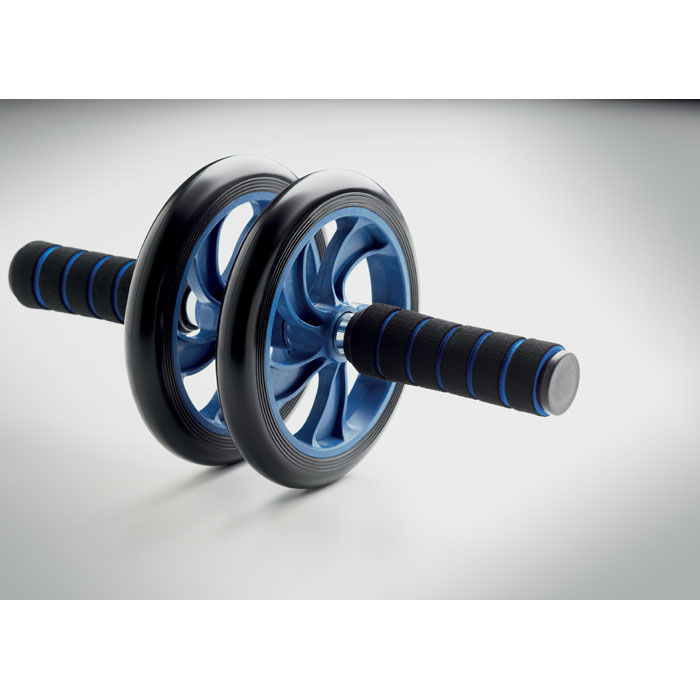 Wałek do ćwiczeń mięśni brzucha w pokrowcu 600D RPET zapinanym na zamek błyskawiczny. Kółko wykonane z gumy, stali i pianki.