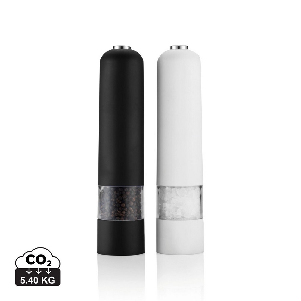 Młynek elektryczny do soli i pieprzu, wykonany z ABS, gumowe wykończenie, ceramiczny mechanizm mielący, z oświetleniem, w ozdobnym pudełku