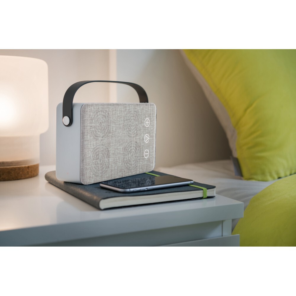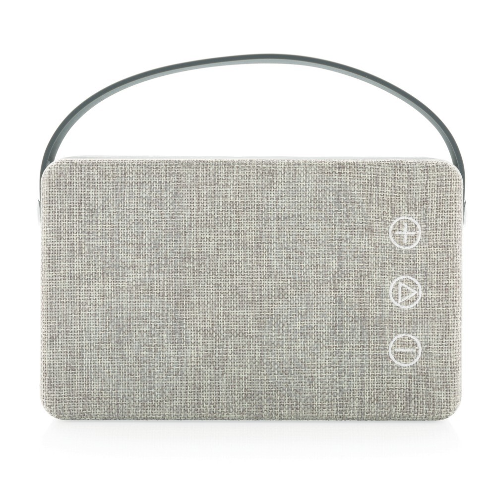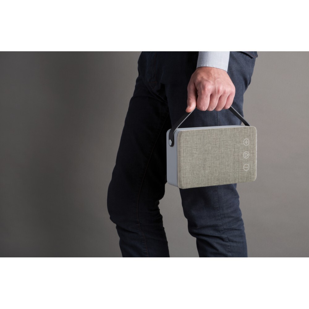 Głośnik bezprzewodowy 2x3W, BT 4.1, obudowa wykończona tkaniną, rączka z PU, wbudowany akumulator 2000 mAh umożliwia odtwarzanie muzyki do 8 godzin, kabel micro USB w komplecie, wzór zastrzeżony®