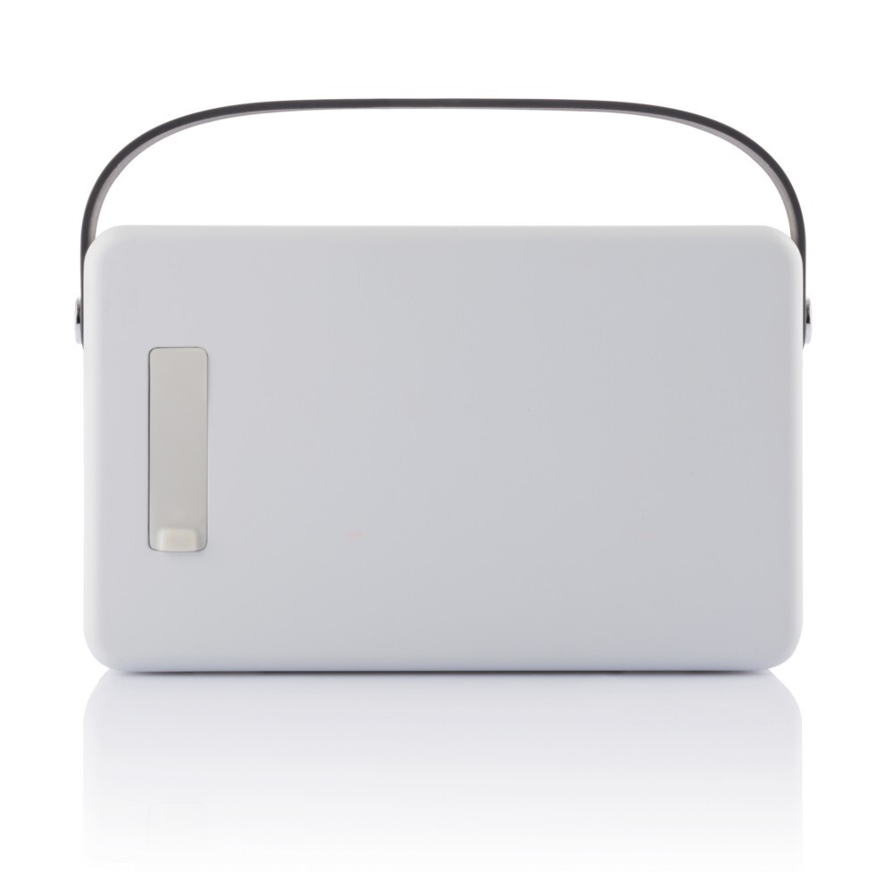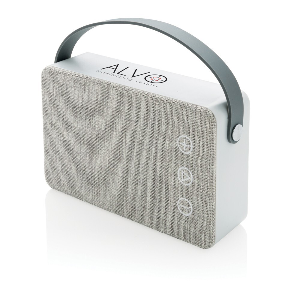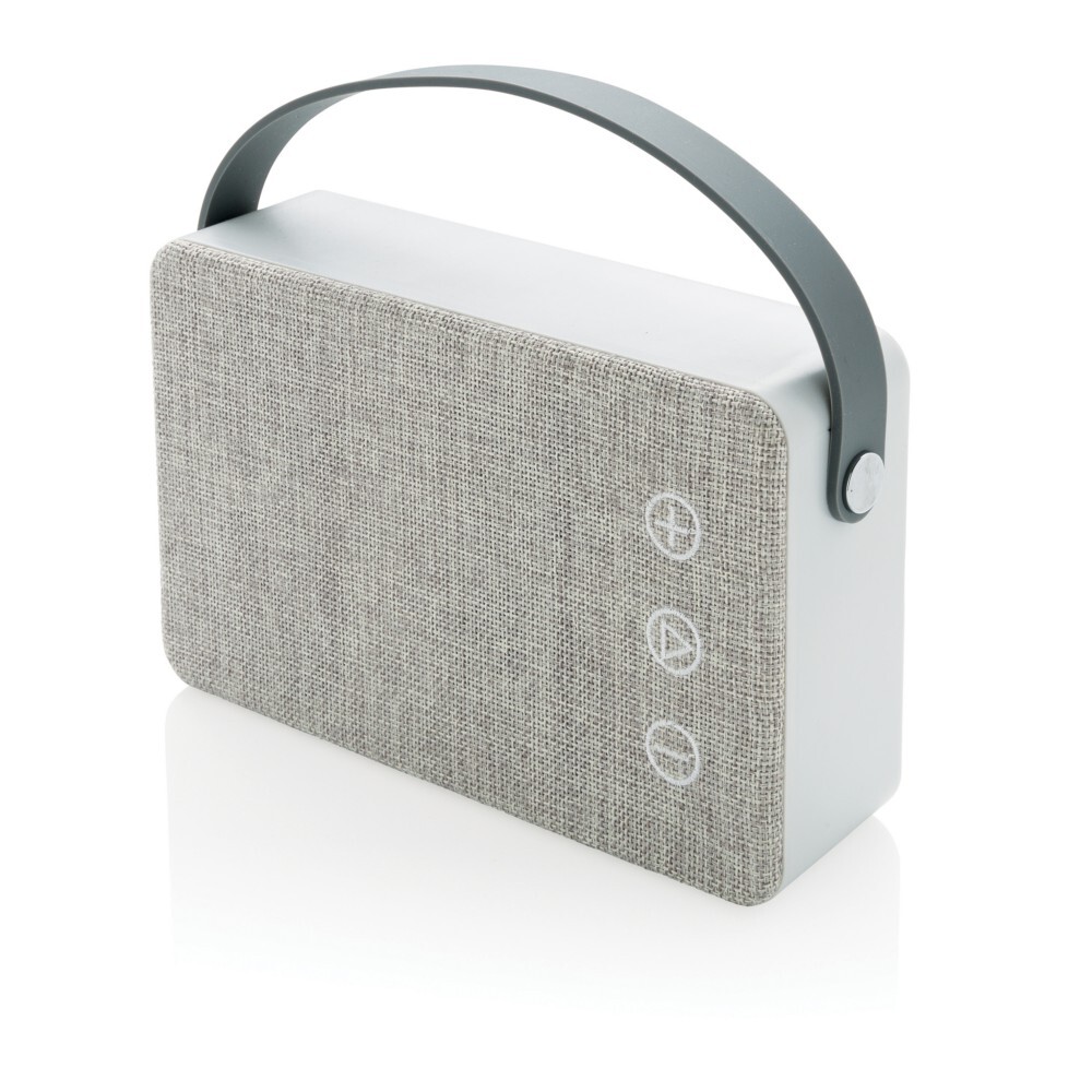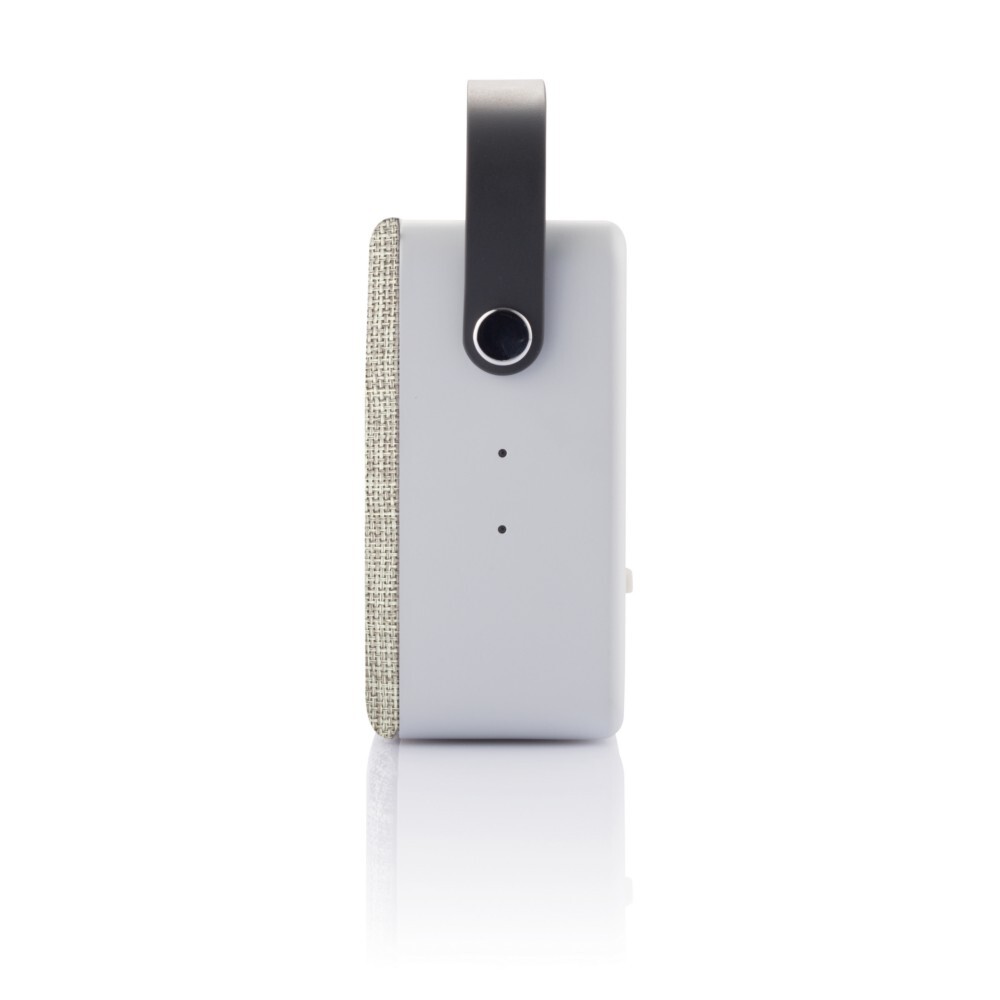 Głośnik bezprzewodowy 2x3W, BT 4.1, obudowa wykończona tkaniną, rączka z PU, wbudowany akumulator 2000 mAh umożliwia odtwarzanie muzyki do 8 godzin, kabel micro USB w komplecie, wzór zastrzeżony®