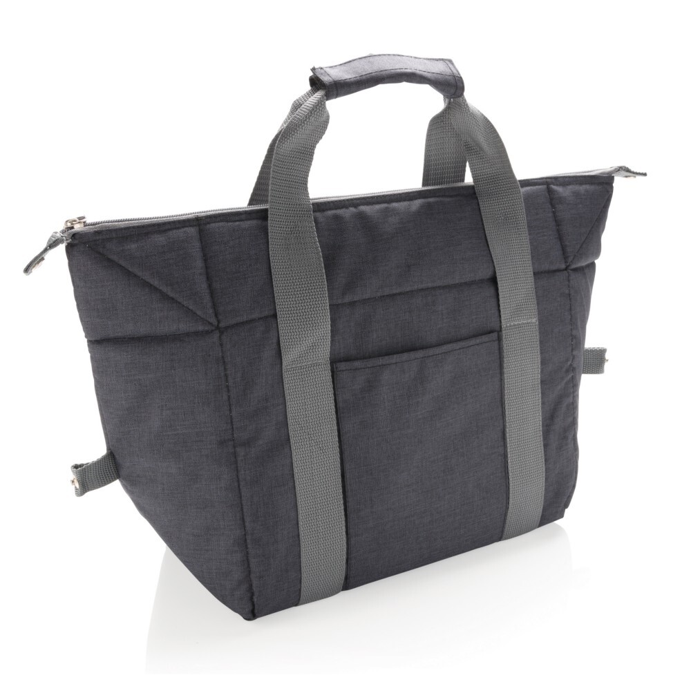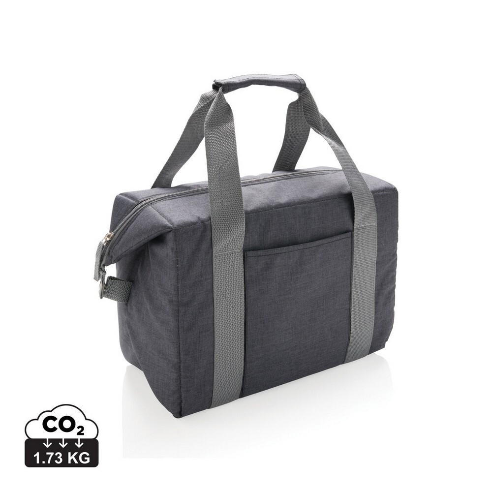 Torba termoizolacyjna z rączkami, wykonana z poliestru 600D, przednia kieszeń, zapięcie z boku umożliwia noszenie torby jako worek, pojemność torby do 26 puszek 0,33 l