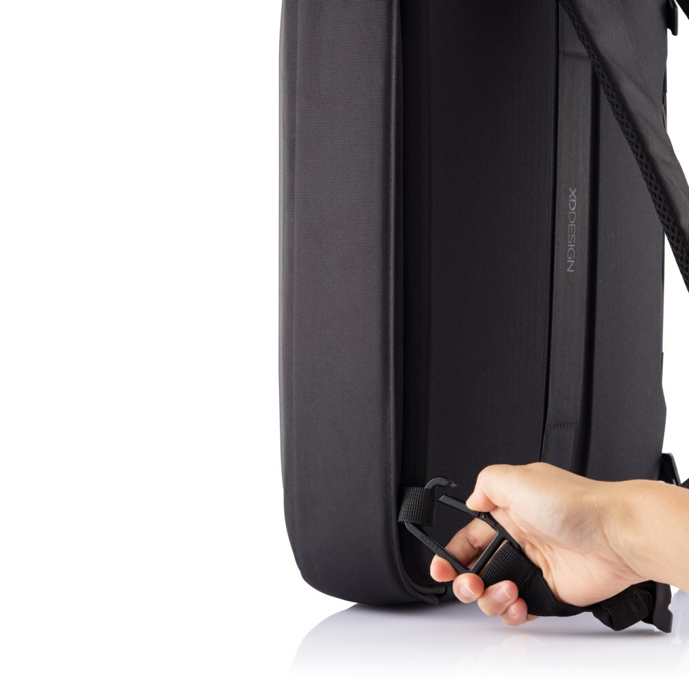 Torba, plecak chroniący przed kieszonkowcami Bobby Bizz, wykonany z wysokiej jakości poliestru, odblaskowe nadruki zwiększające bezpieczeństwo w nocy, wewnątrz usztywnione przegrody na laptopa 15,6", tablet do 10", specjalna metalowa konstrukcja chroniąca przedmioty i zachowująca kształt plecaka, możliwość używania plecaka również jako torby, zintegrowana kłódka umożliwiająca przypięcie plecaka do stałego obiektu, pasek do zamocowania na walizce w komplecie, wzór zastrzeżony®