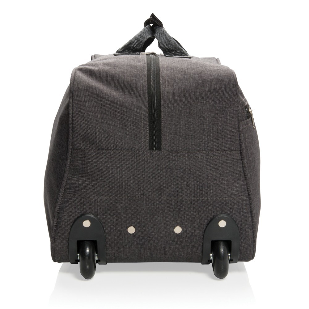 Torba sportowa, podróżna na kółkach, wykonana z dwukolorowego poliestru 600D o dużej gęstości, posiada przednią kieszeń, przegroda główna na zamek błyskawiczny
