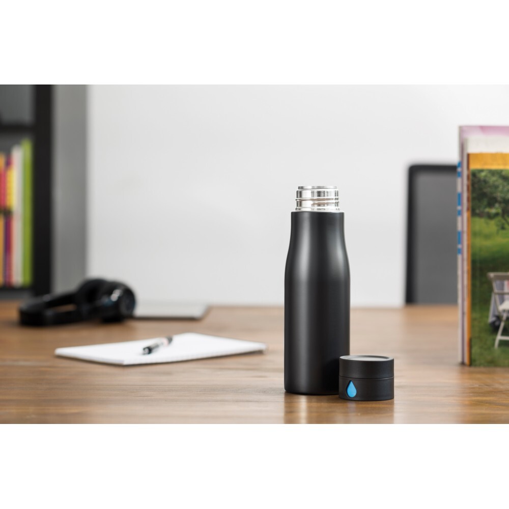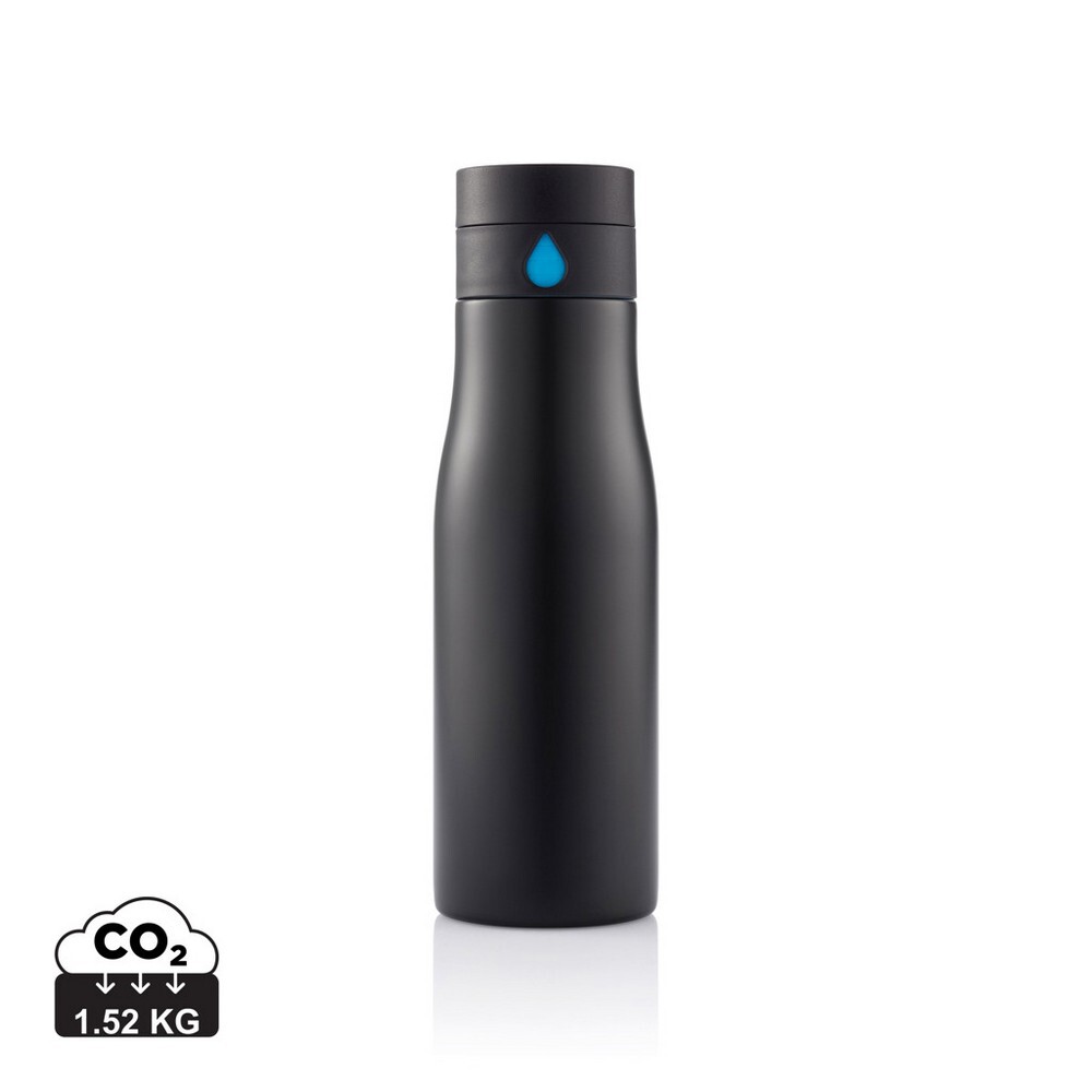 Butelka sportowa 650 ml Aqua, monitorująca ilość wypitej wody / Czarny, niebieski