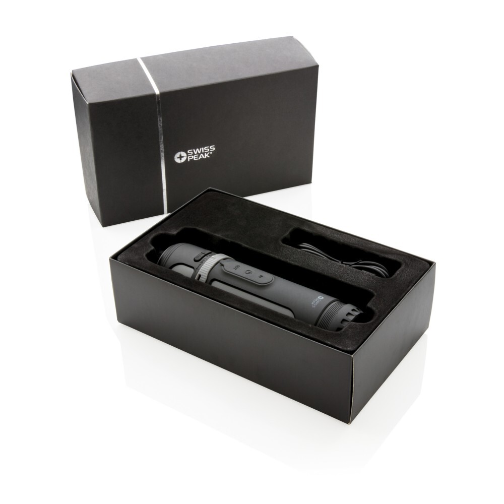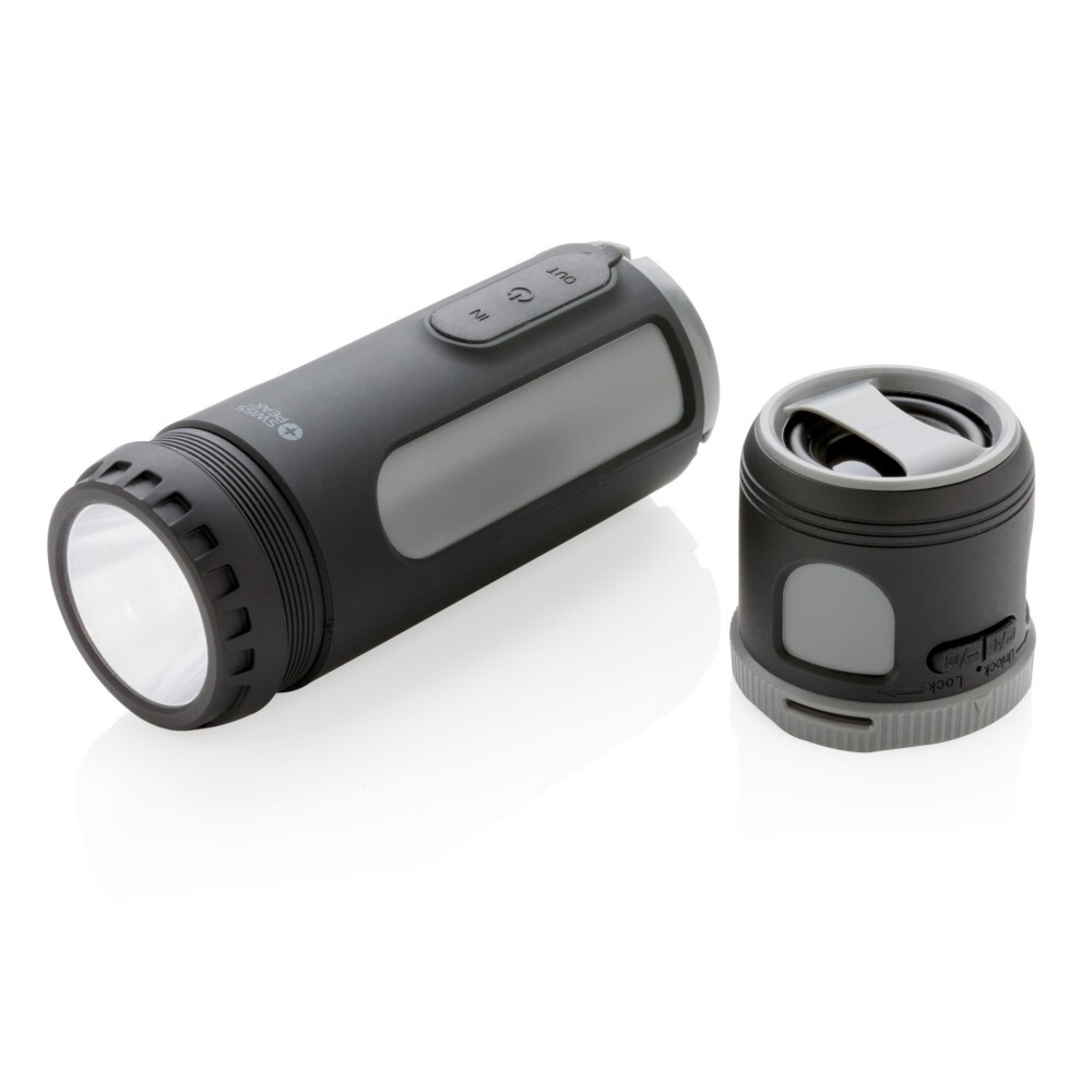 Głośnik bezprzewodowy 3W, power bank 4400 mAh, lampka Swiss Peak / Czarny, szary
