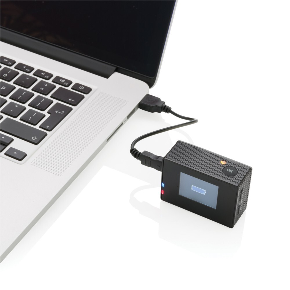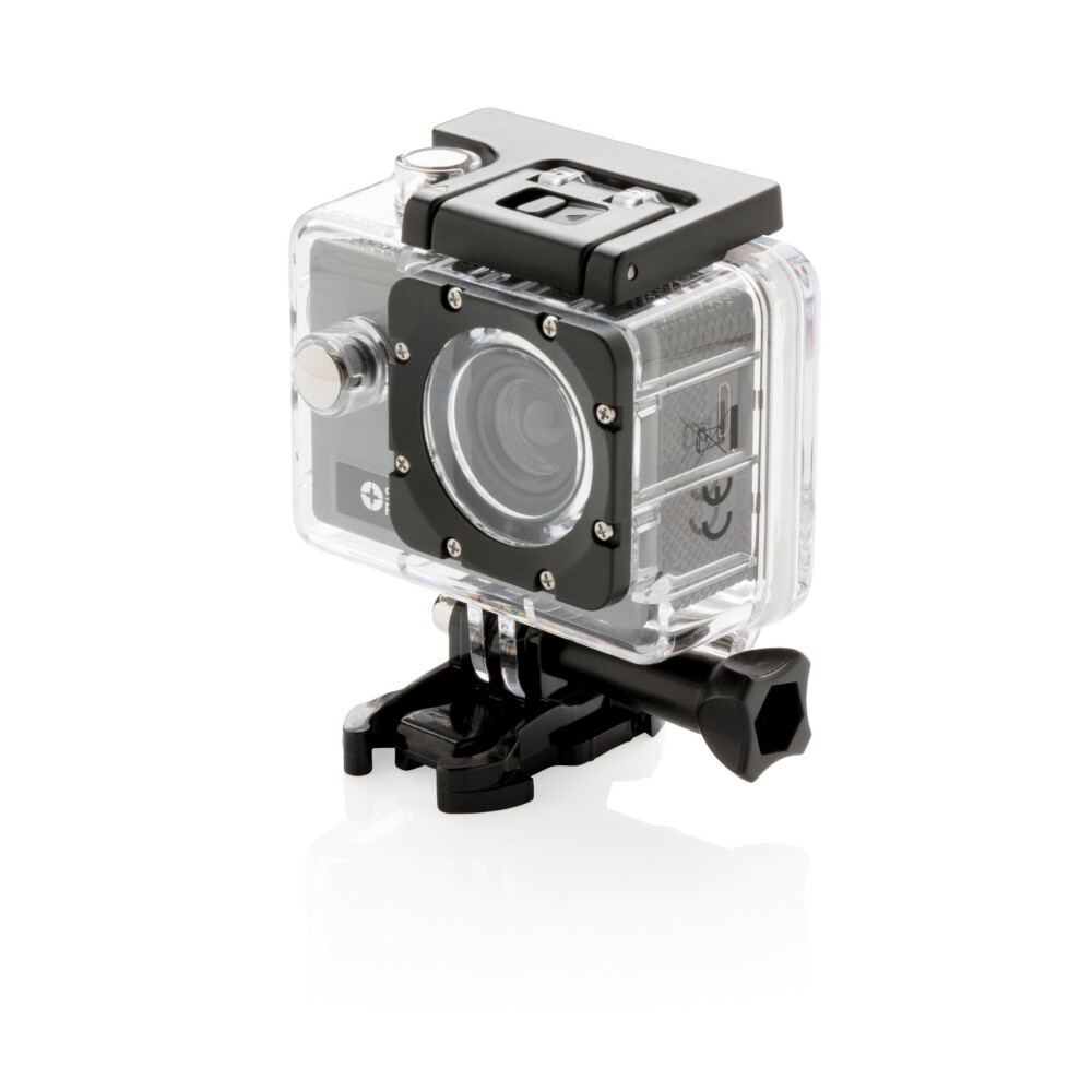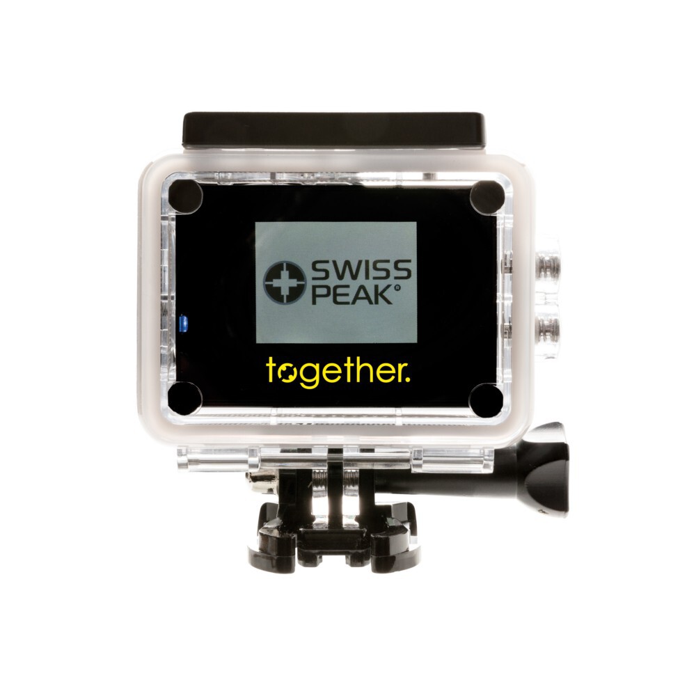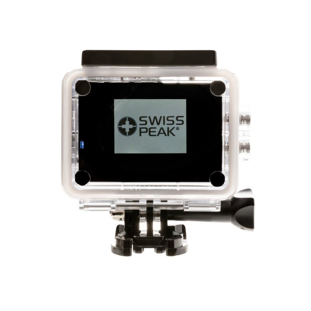 Kamera sportowa Full HD (1280*720P), 11 akcesoriów w komplecie, szeroki kąt nagrywania, funkcja 120 stopni, wbudowany akumulator o pojemności 650 mAh umożliwia nagrywanie do 1 godziny na 1 ładowaniu, wytrzymały uchwyt do robienia zdjęć selfie wykonany z ABS oraz pokrowiec podróżny Swiss Peak w komplecie