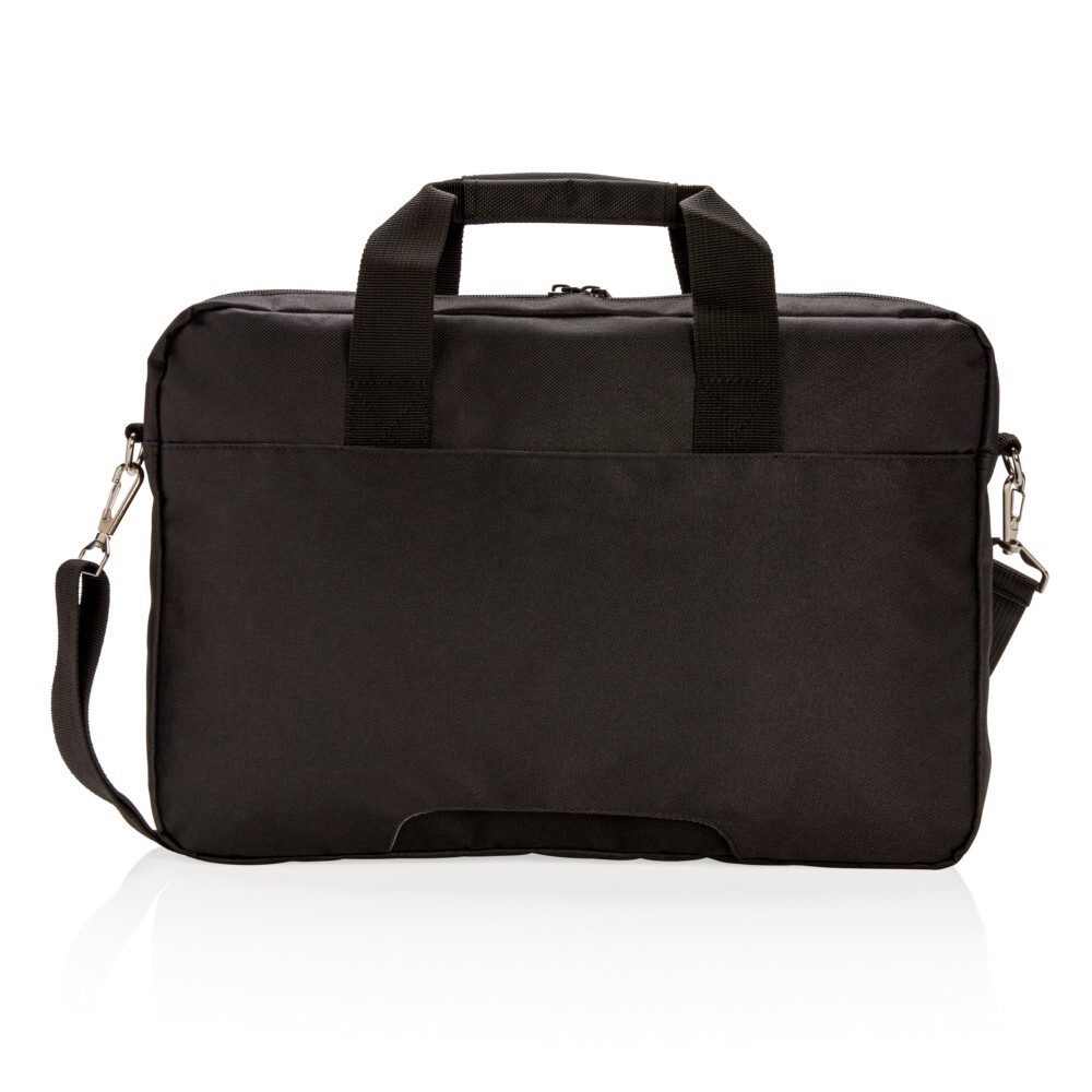 Torba na laptopa 15,4", wykonana z poliestru 600D i 1680D, wewnątrz kieszeń na tablet, z przodu kieszeń na zamek błyskawiczny z miejscem na przybory do pisania i inne akcesoria, regulowany i odpinany pasek na ramię umożliwia noszenie torby na różne sposoby, posiada mocowanie do walizki, nie zawiera PVC
