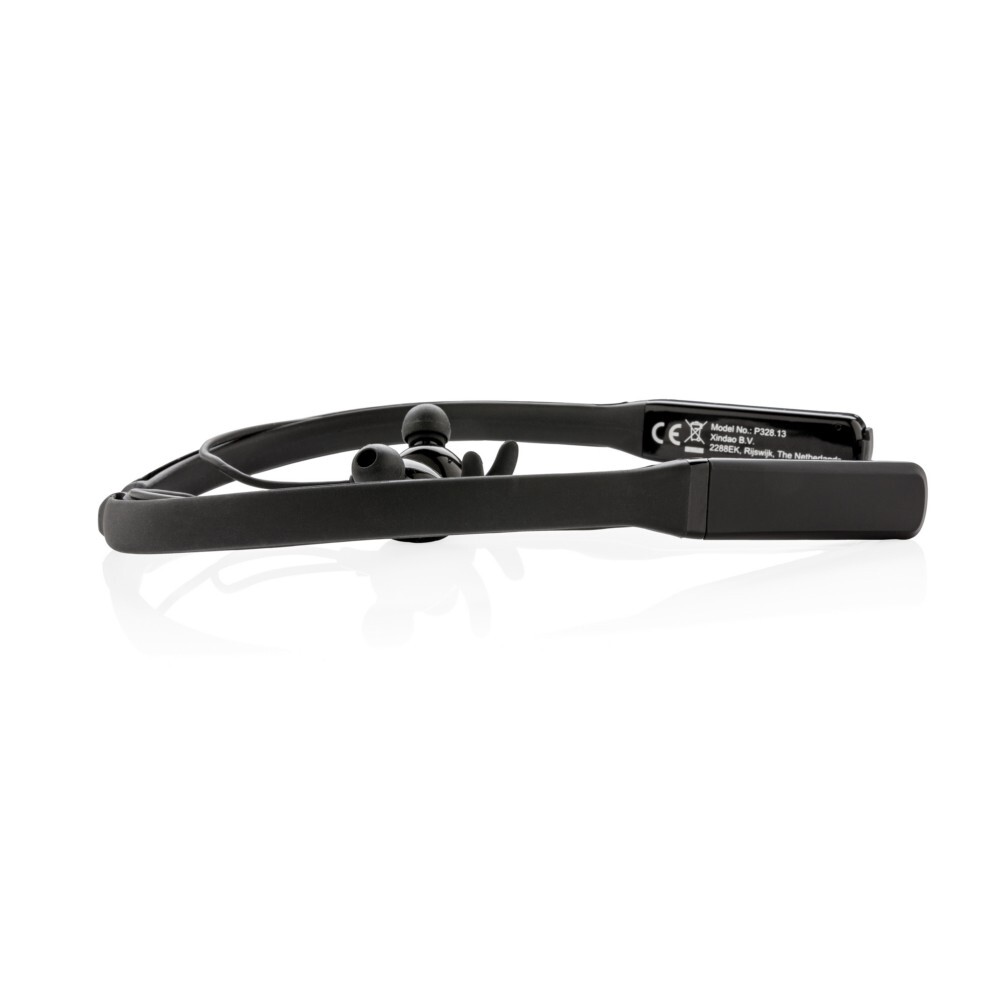 Bezprzewodowe słuchawki douszne BT 4.2 z systemem ANC (aktywna redukcja szumów), stopień ANC: 25dB, odporna na pot opaska zapewniająca optymalne rozłożenie ciężaru i wygodę, funkcja odbierania połączeń, wbudowany mikrofon, wbudowany akumulator o pojemności 250 mAh umożliwia odtwarzanie muzyki do 8 godzin w trybie ANC lub do 10 godzin w trybie normalnym, ponowne naładowanie w 1 godzinę, zasięg do 10 m, etui na zamek w komplecie
