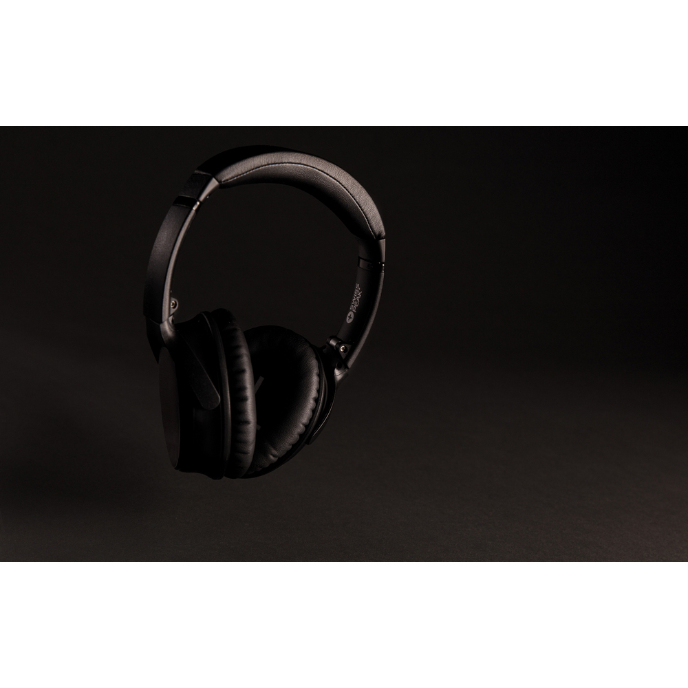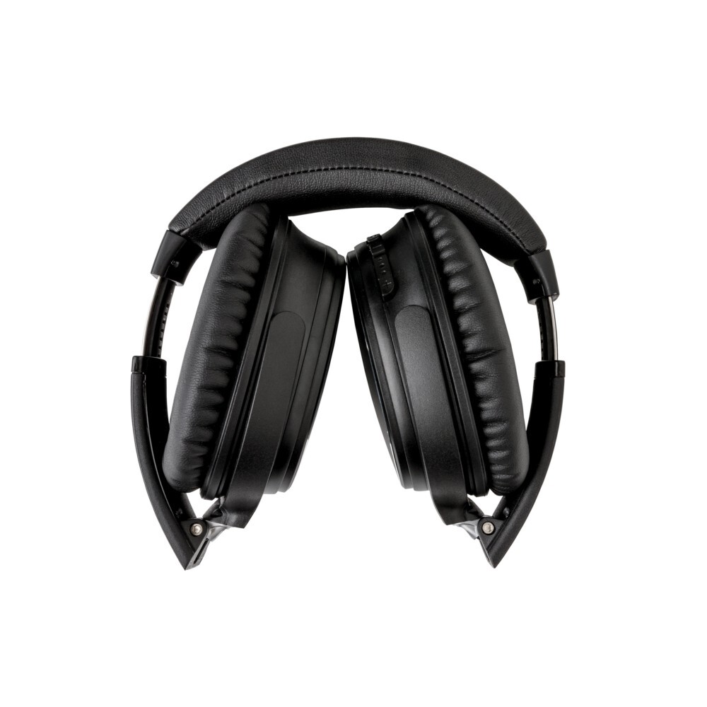 Bezprzewodowe słuchawki nauszne BT 4.2 z systemem ANC (aktywna redukcja szumów) eliminującym dźwięki z otoczenia, funkcja odbierania połączeń, wbudowany mikrofon, wygodne poduszki, wykonane z ABS, w pełni naładowany akumulator 400 mAh umożliwia odtwarzanie muzyki do 14 godzin, ponowne naładowanie w 1,5 godziny, zasięg do 10 m, stopień ANC: 23 dB, etui na zamek błyskawiczny w komplecie