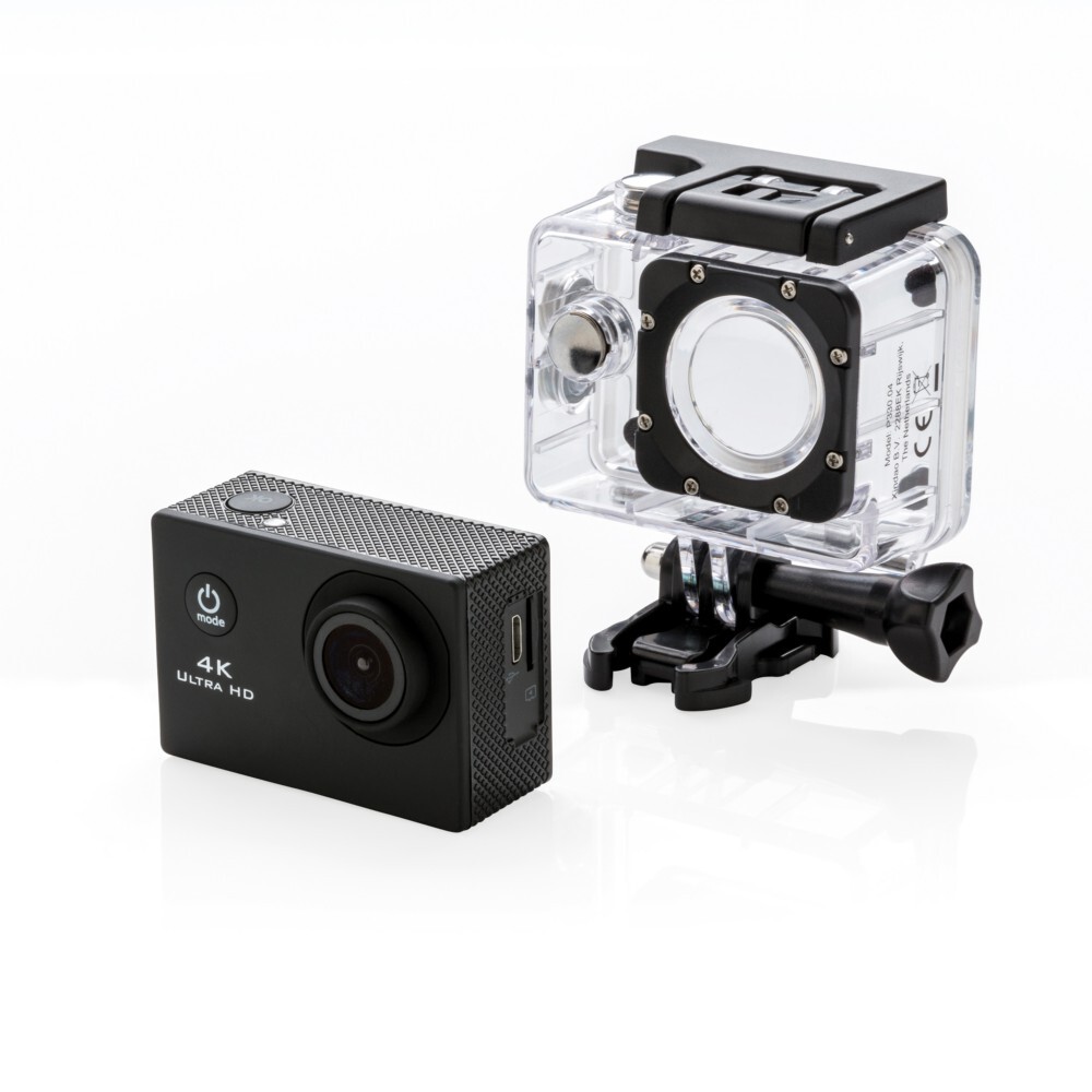 Kamera sportowa HD o rozdzielczości interpolowanej 4K, wodoodporna do 30 m, wbudowany wyświetlacz TFT LCD 1,5", akumulator o pojemności 650 mAh umożliwia nagrywanie do 70 minut, możliwość rozszerzenia pamięci urządzenia do 32 GB za pomocą karty micro SD (nie dołączona), 11 akcesoriów w komplecie: wodoodporny pokrowiec, uchwyt do zamocowania na kasku, uchwyt rowerowy, klip, złącze, przegub, 2 paski, 2 kawałki taśmy, kabel micro USB do ładowania
