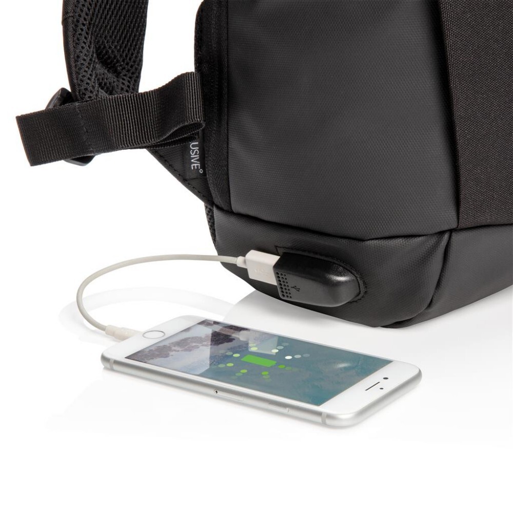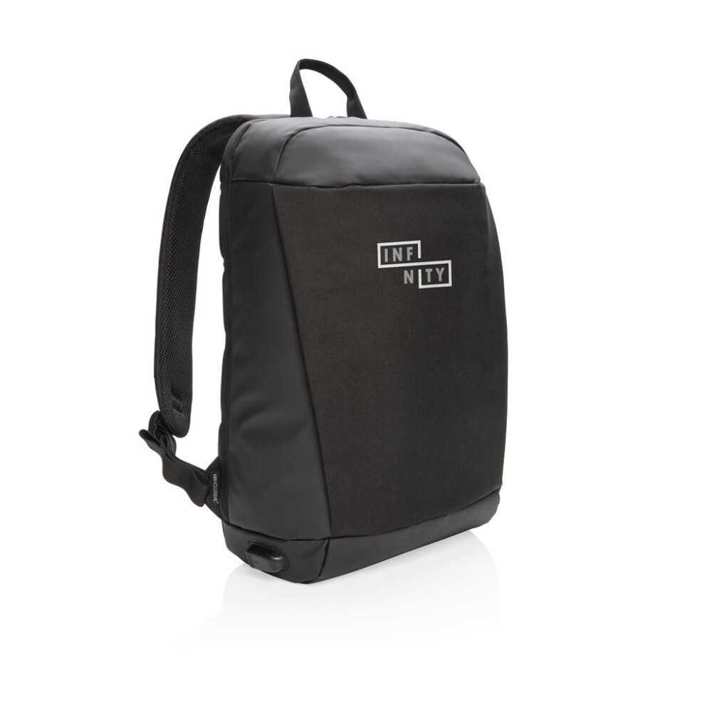 Plecak chroniący przed kieszonkowcami z przegrodą na laptopa 15,6", miękka przegroda główna, kieszenie z ochroną RFID, gniazdo USB do ładowania telefonów (power-bank nie dołączony), nie zawiera PVC, wzór zastrzeżony®