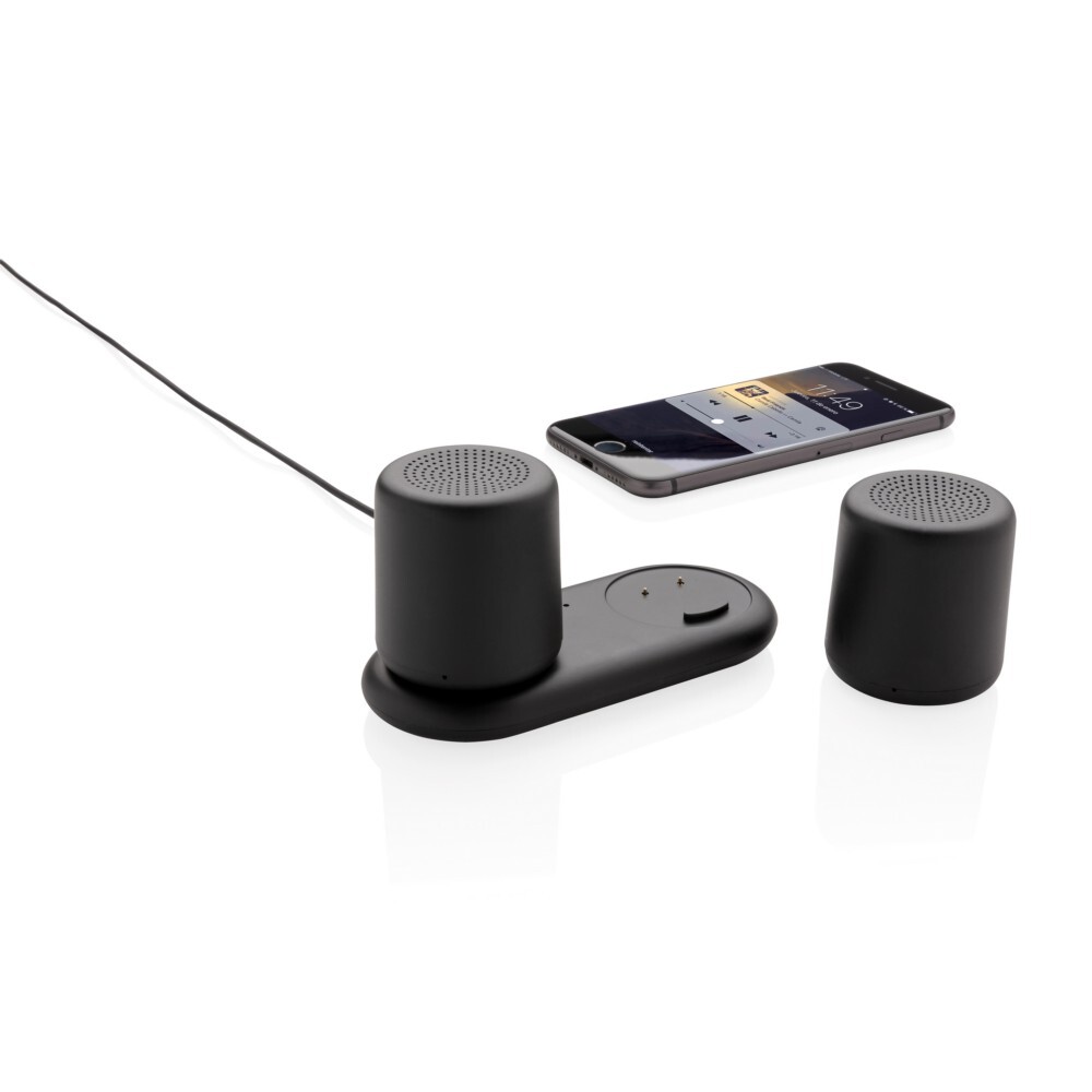 Zestaw głośników bezprzewodowych 2x3W, ładowane indukcyjnie / Czarny