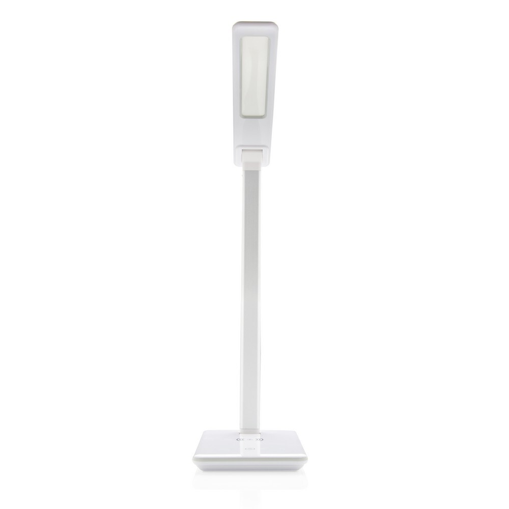 Lampka na biurko, ładowarka bezprzewodowa 5W, wykonana z ABS, włączanie światła za pomocą dotykowego przycisku, żywotność lampki do 50000 godzin, bezprzewodowe ładowanie jest kompatybilne ze wszystkimi urządzeniami posiadającymi możliwość ładowania indukcyjnego, wejście 5V/2A, wyjście bezprzewodowe 5V/1A 5W, kabel micro USB 150 cm w komplecie