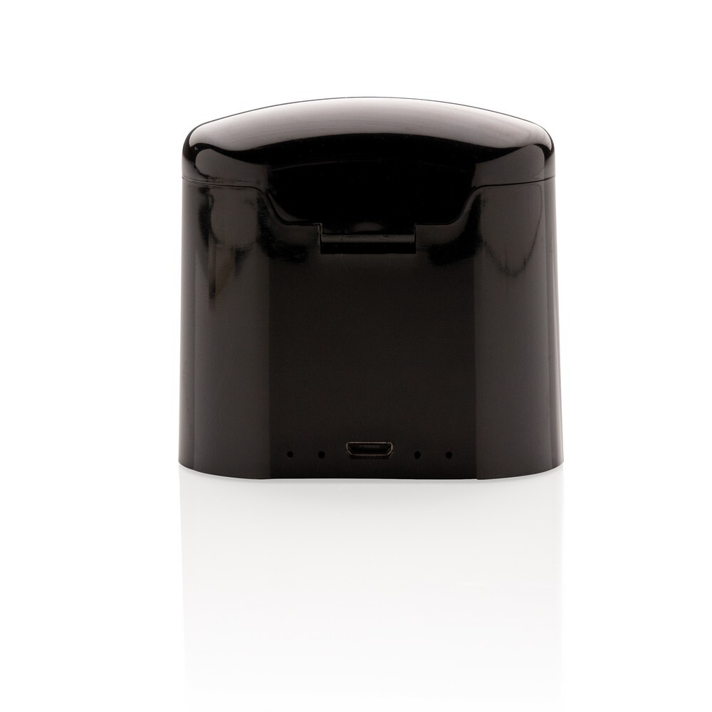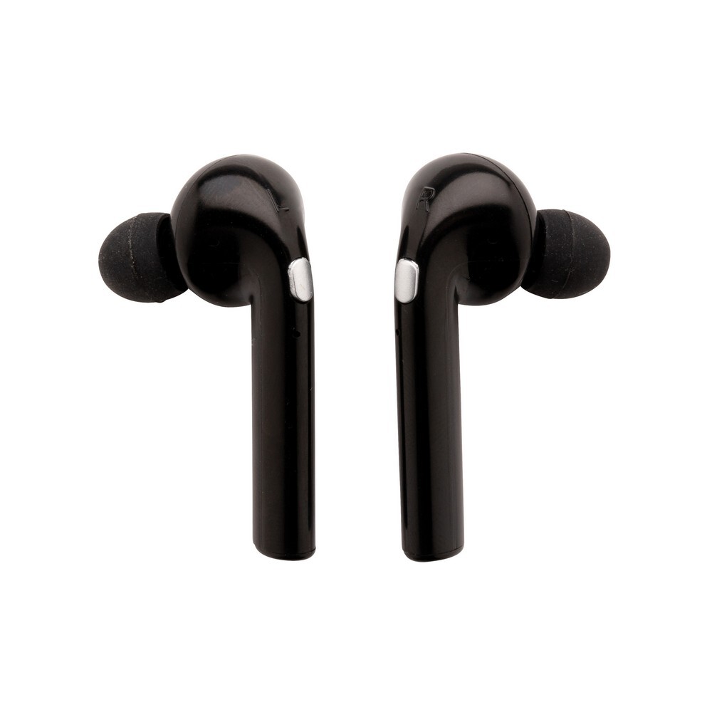 Bezprzewodowe słuchawki duszne, BT 5.0, wykonane z ABS, wbudowany mikrofon, etui z akumulatorem 400 mAh pełniące funkcję stacji ładującej w komplecie, akumulator słuchawek o pojemności 40 mAh umożliwia odtwarzanie muzyki na średnim poziomie głośności do 2 godzin, ponowne naładowanie za pomocą etui w 1 godzinę, zasięg do 10 m, 3 rozmiary nakładek dousznych w komplecie