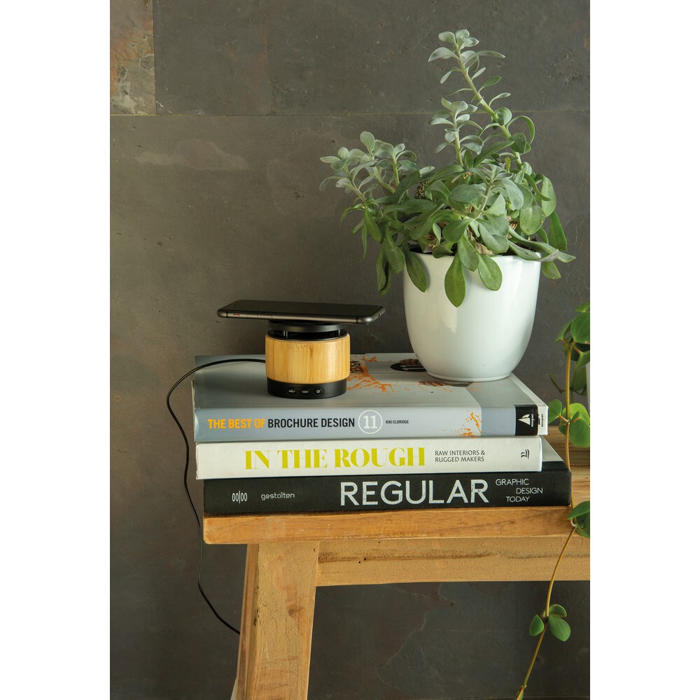 Bambusowy głośnik bezprzewodowy 3W, ładowarka bezprzewodowa / Czarny