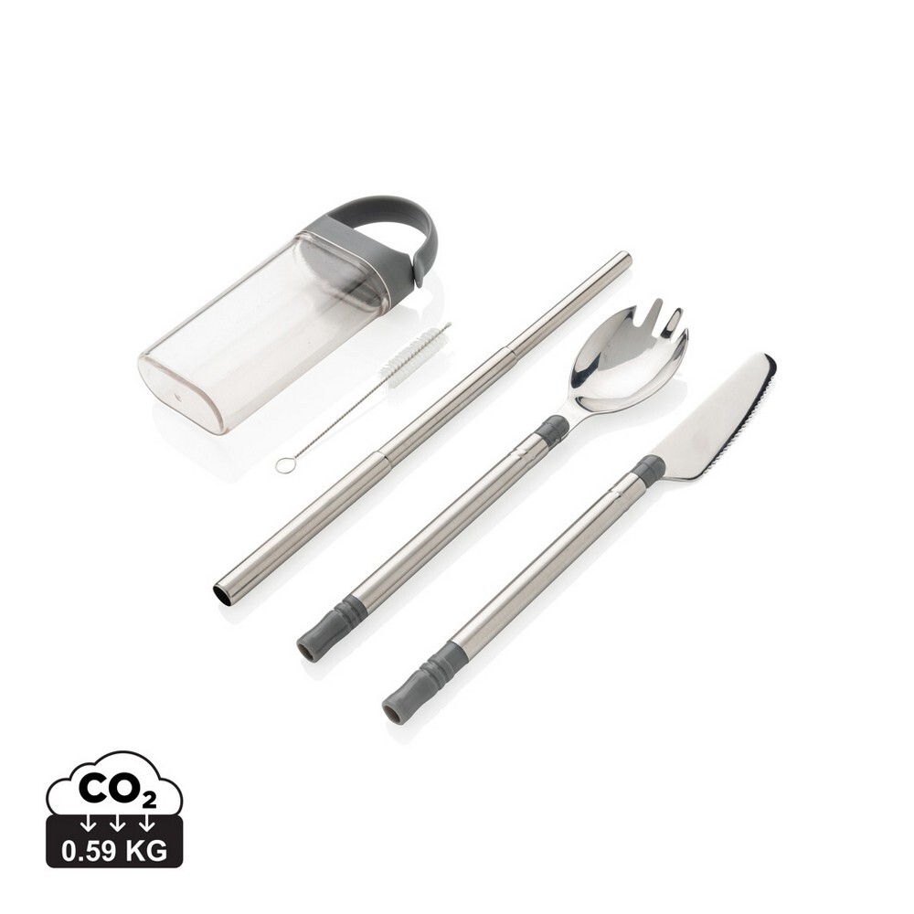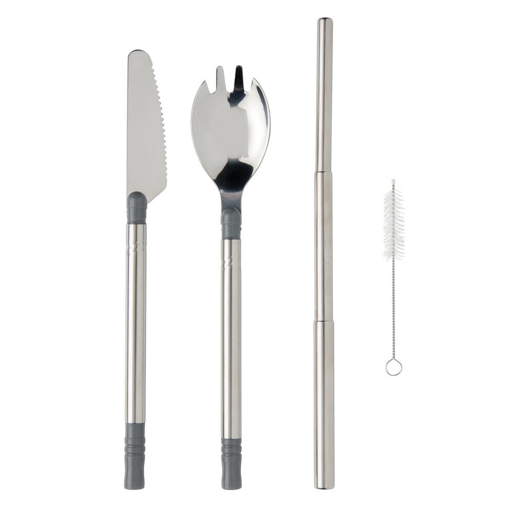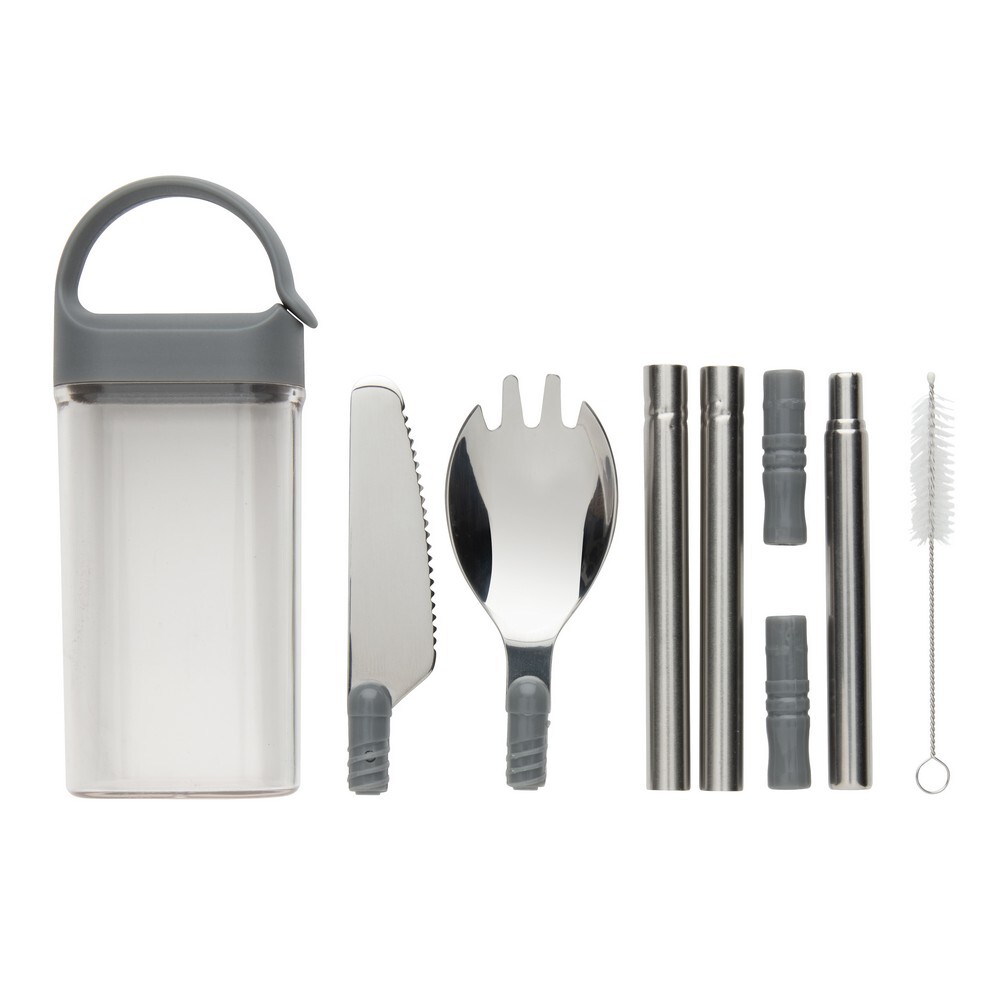 Zestaw sztućców wielokrotnego użytku On-The-Go / Srebrny, szary