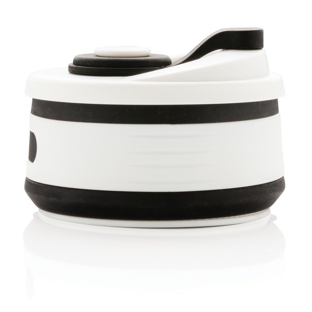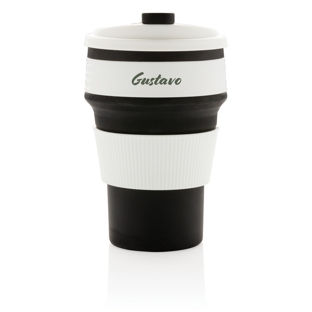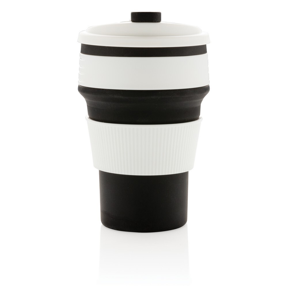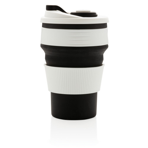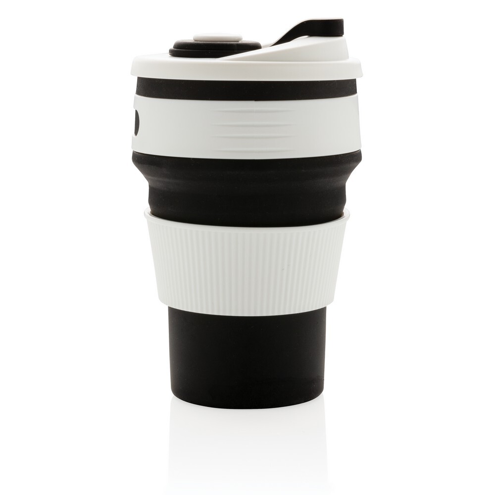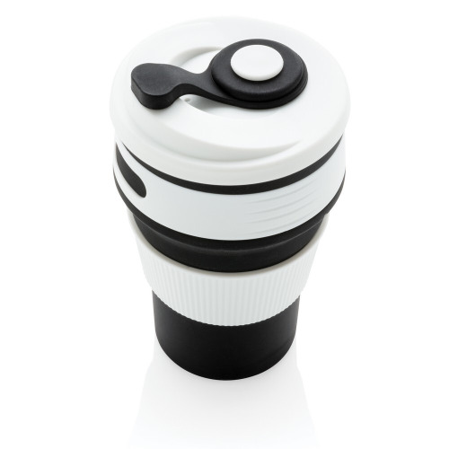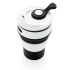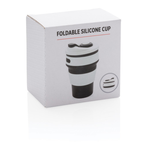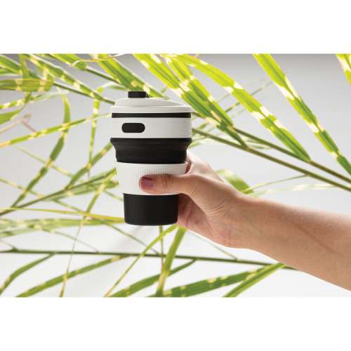 Składany kubek podróżny 350 ml, wykonany w 100% ze spożywczego materiału silikonowego, nieprzywierająca powłoka, szczelny, elastyczny, przed pierwszym użyciem należy zanurzyć kubek na kilka minut w gotującej wodzie, można myć w zmywarce, nie zawiera BPA