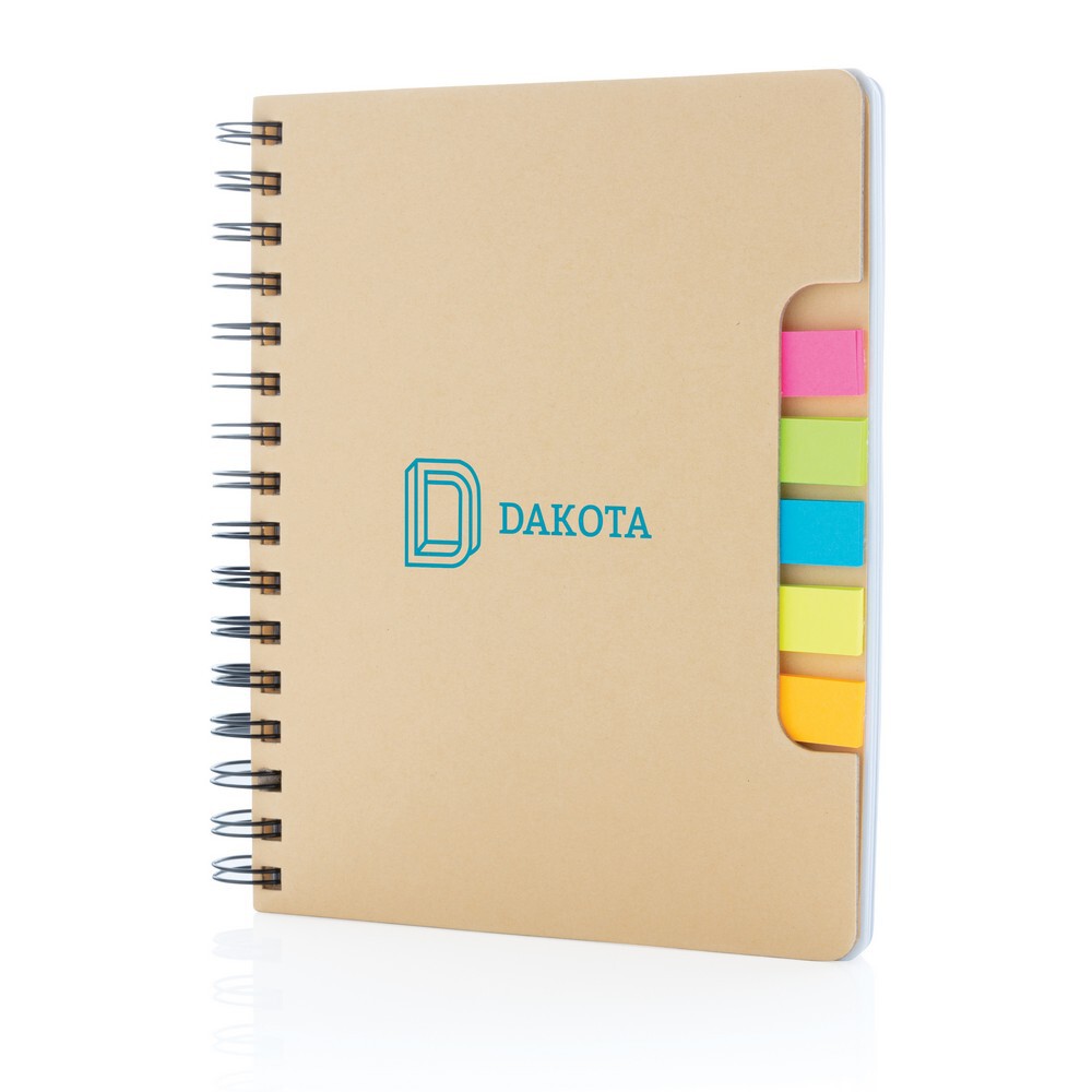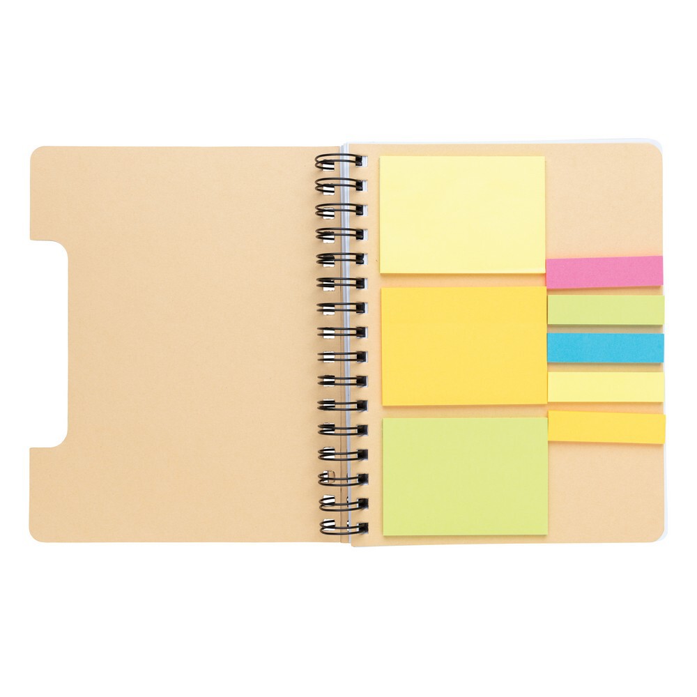Zestaw do notatek, notatnik A5 (100 kartek z papieru z recyklingu 80 g/m2 w linie), spiralne bindowanie, karteczki samoprzylepne w 2 rozmiarach (30 szt. z każdego rodzaju)