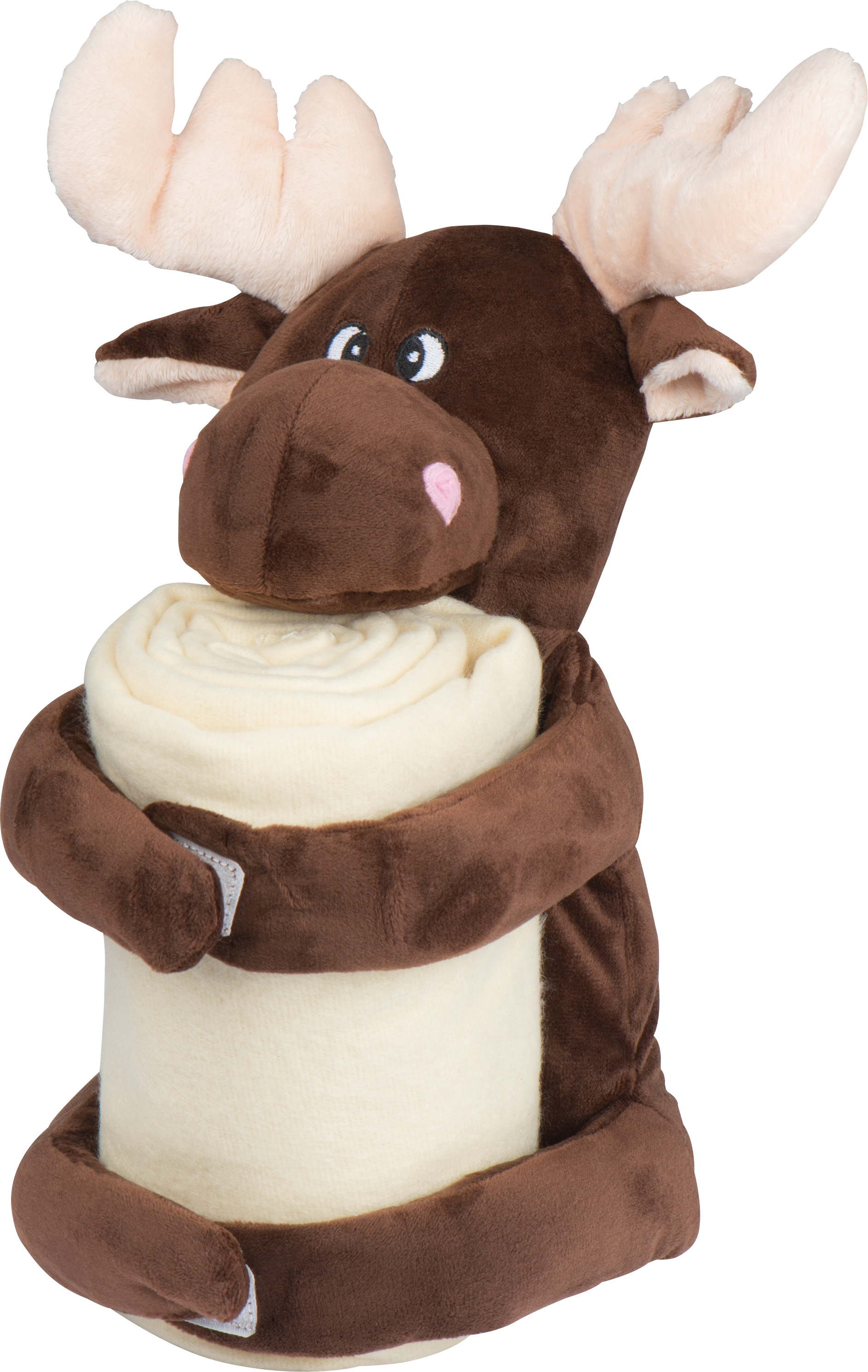 Prezent nie tylko dla dzieci! Słodka maskotka w kształcie renifera z polarowym kocem. Rozmiar koca: 100x100cm.