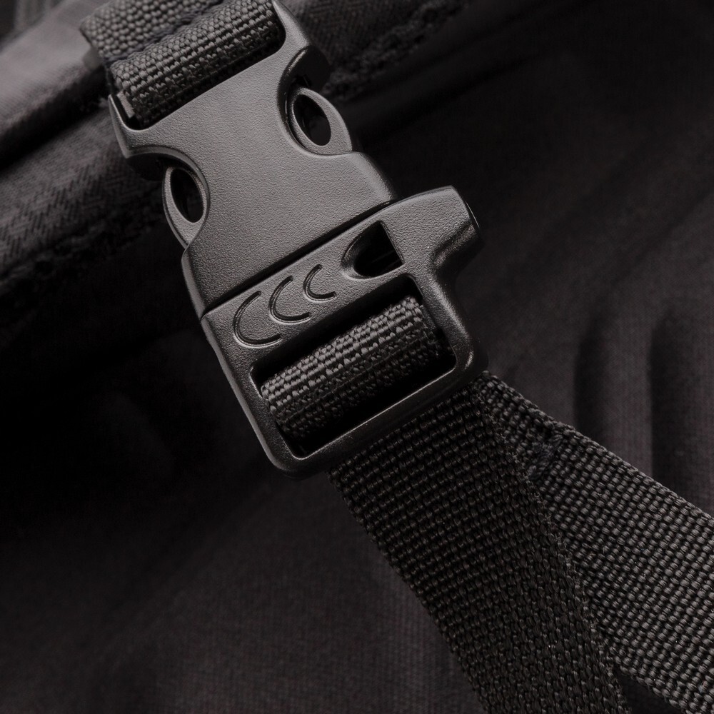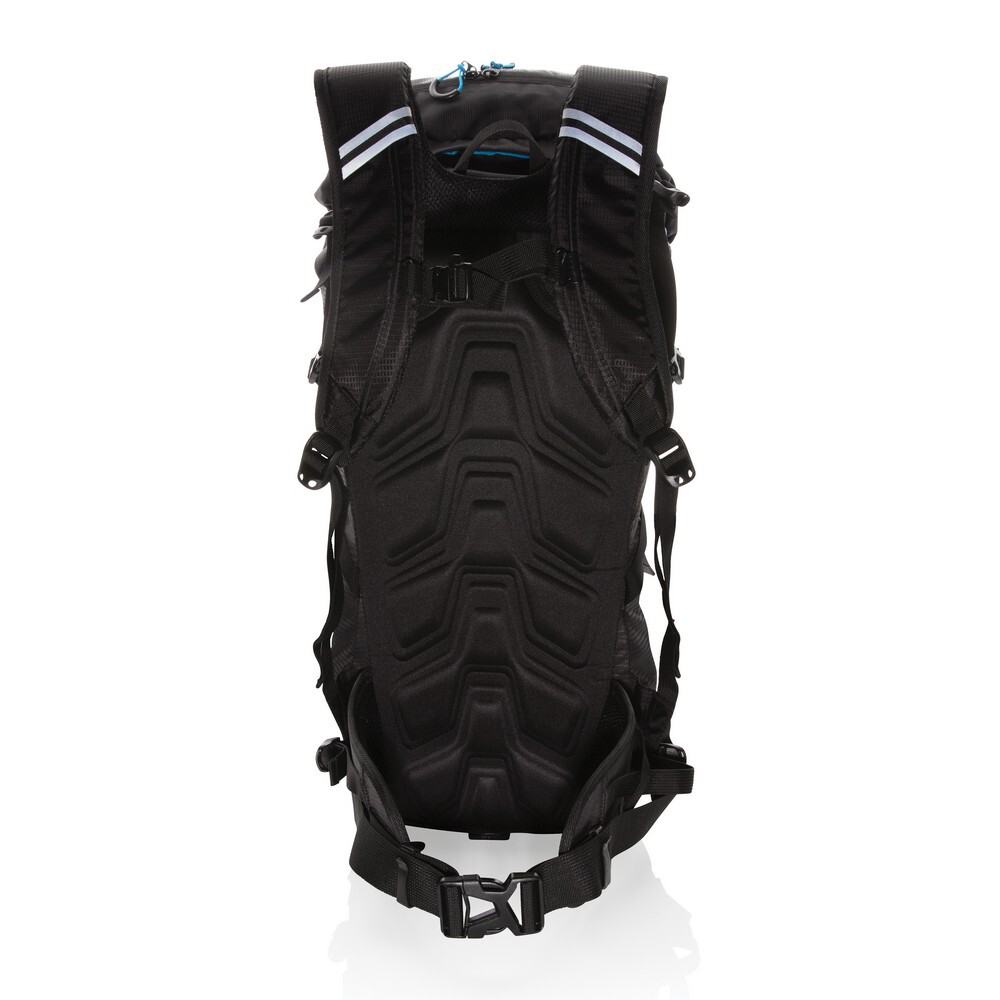 Plecak, pojemność 40l, wykonany z wytrzymałej tkaniny poliestrowej, wewnątrz kieszeń na butelkę lub laptopa, pętle do kijków trekkingowych (nie dołączone), zintegrowana osłona przeciwdeszczowa, nie zawiera PVC