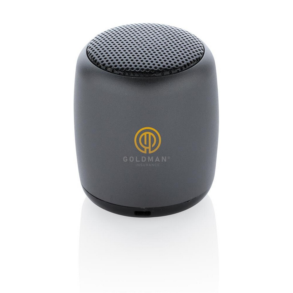 Głośnik bezprzewodowy 3W, BT 5.0, kieszonkowy rozmiar, wykonany z wytrzymałego aluminium, w pełni naładowany akumulator o pojemności 180 mAh pozwala na odtwarzanie muzyki do 3 godzin, zasięg do 10m, kabel do ładowania z TPE bez dodatku PVC w komplecie