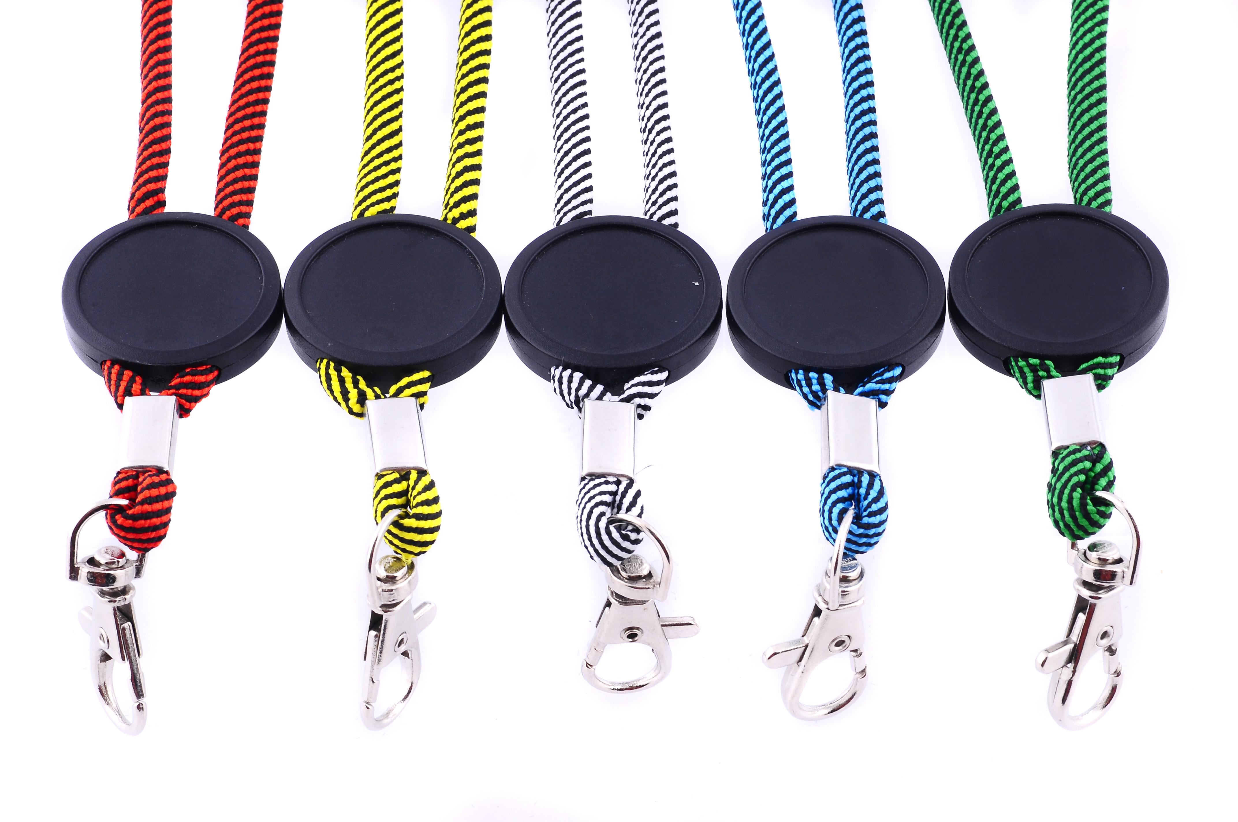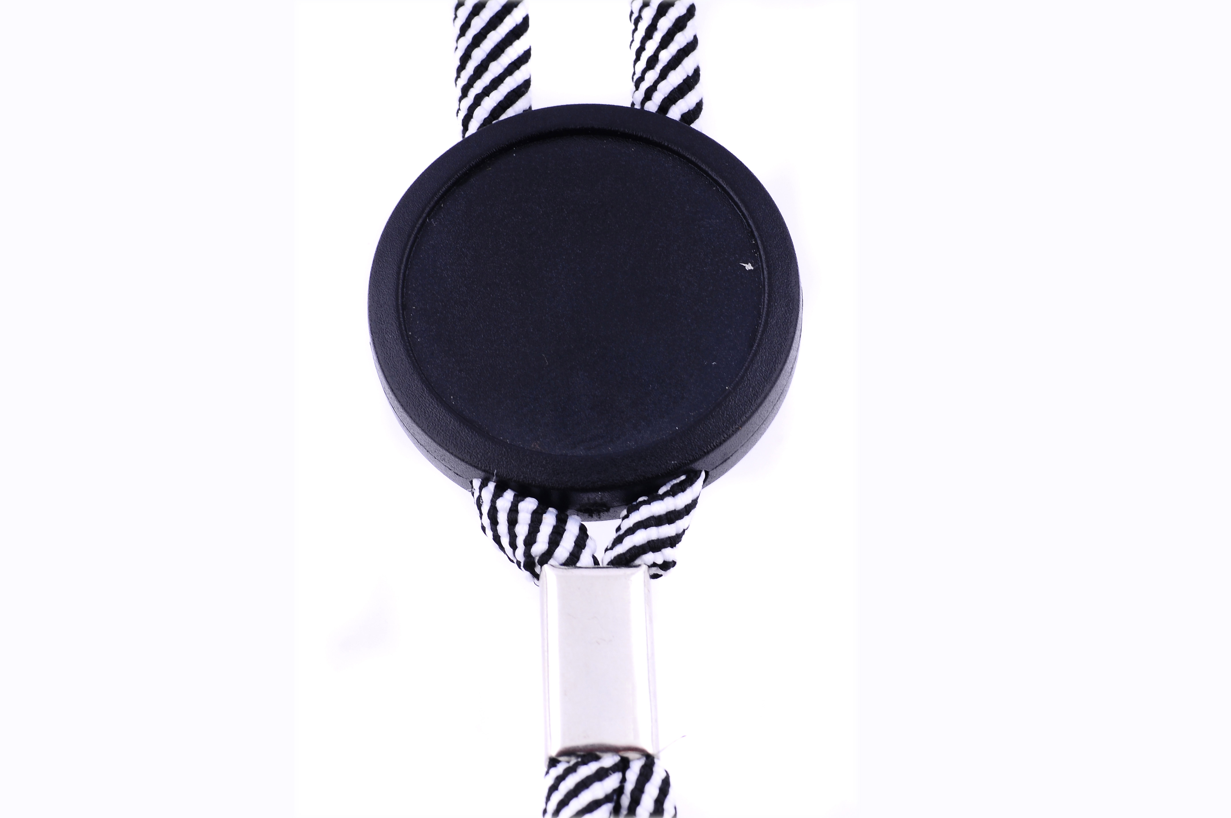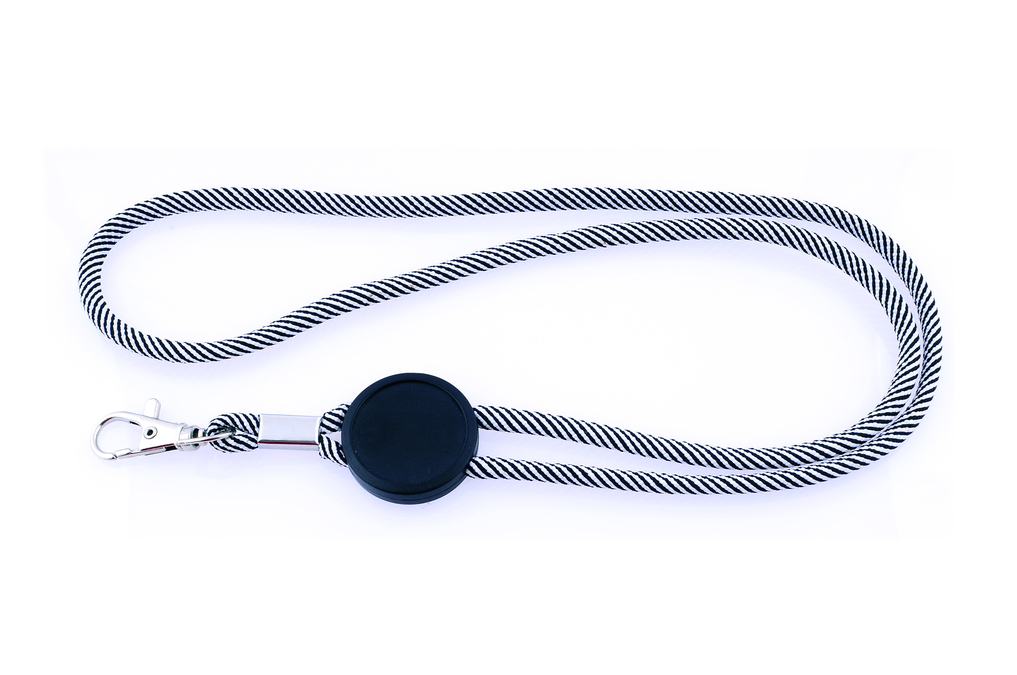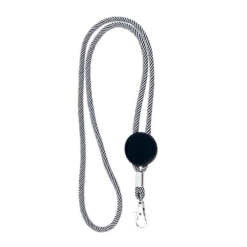 Regulowana smycz wykonana z poliestru. Logo umieścimy w kółku o średnicy 2,5 cm.