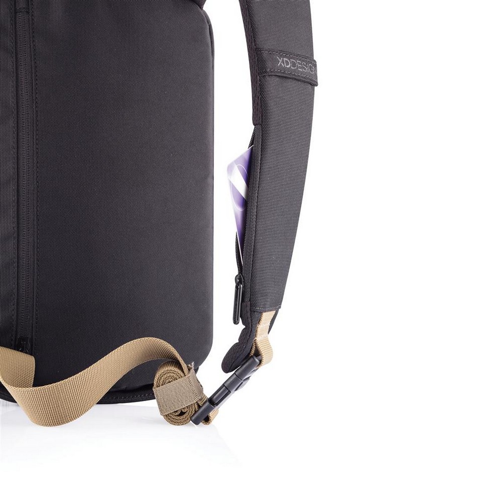 Plecak chroniący przed kieszonkowcami Bobby Sling z miękkim paskiem na ramię, wodoodporny i odporny na przecięcia materiał, 3 punktowa klamra bezpieczeństwa, zintegrowany port USB do ładowania telefonów (power-bank nie jest dołączony), kieszeń RFID, ukryte zamki i kieszenie