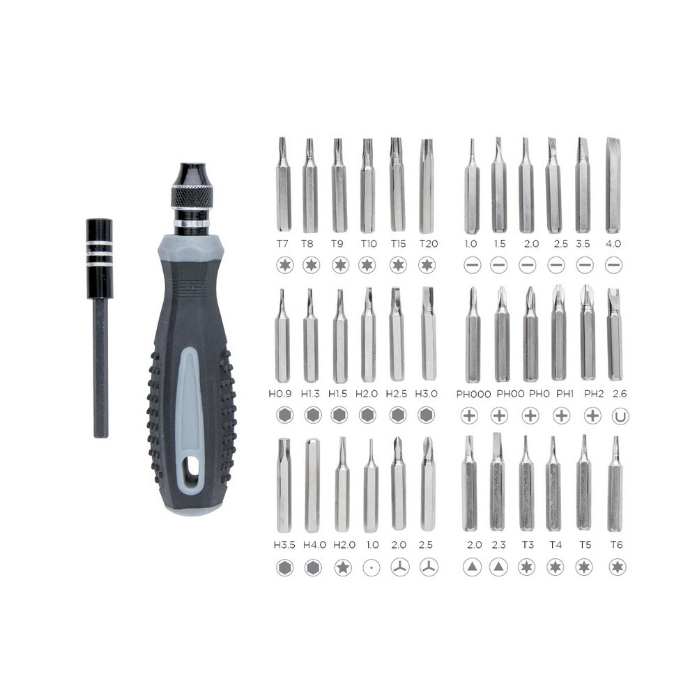 Zestaw narzędzi 38 el., wkrętak wykonany z PP, końcówki ze stali węglowej, w pudełku z ABS z przezroczystym wieczkiem