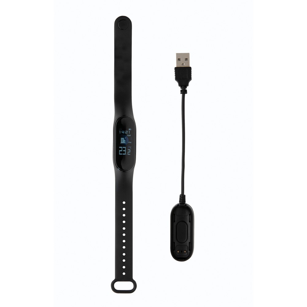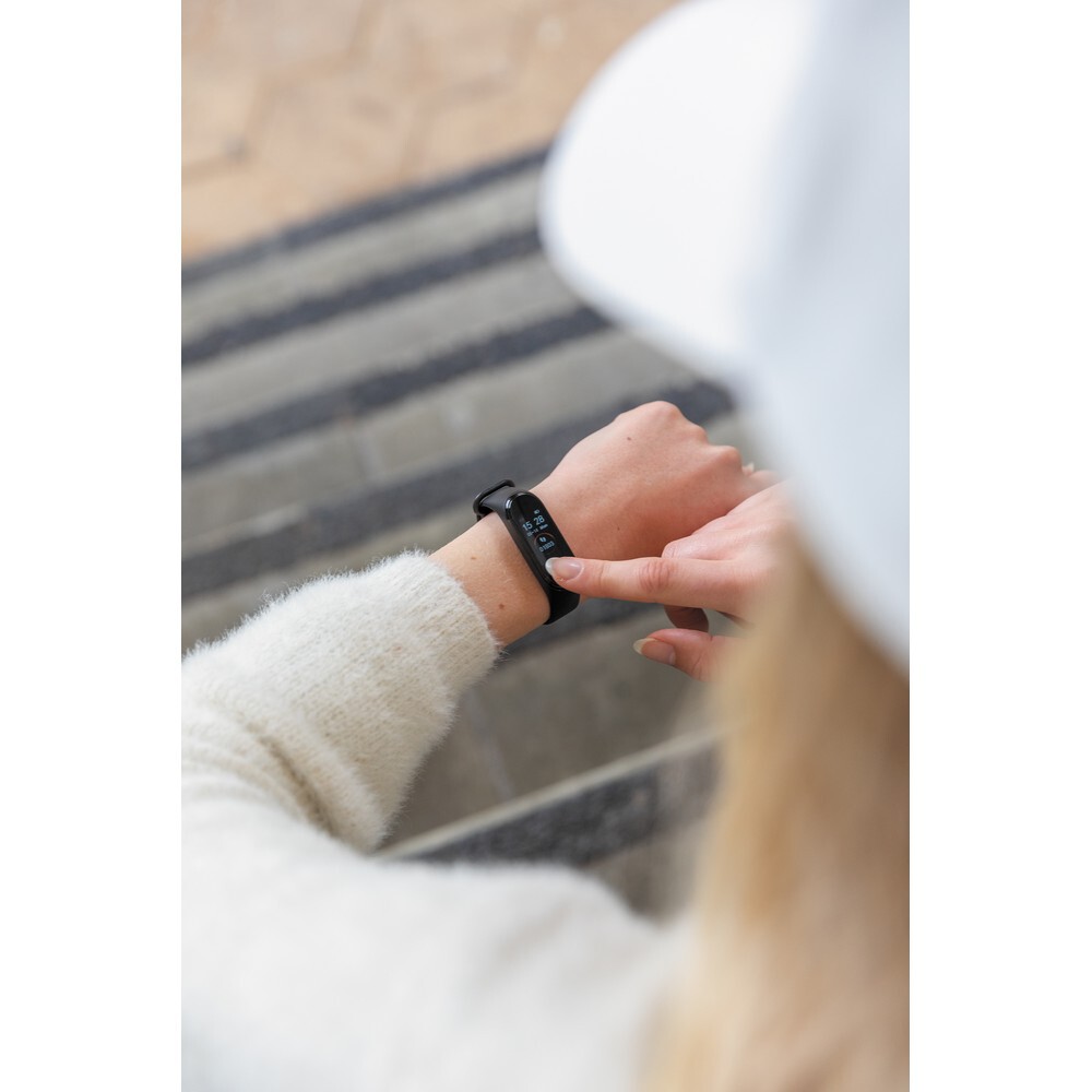 "Monitor aktywności BT 4.2, zegarek wielofunkcyjny, pasek z miękkiego TPU, wodoodporny (IP67), kolorowy wyświetlacz TFT 0,96"", wbudowany akumulator klasy A o pojemności 90 mAh umożliwia pracę urządzenia w trybie czuwania do 5 dni, funkcje: termometr (odchylenie max 0,2 stopnia C), krokomierz, licznik spalonych kalorii, monitor snu, tryb multi sport, powiadomienie o przychodzących połączeniach i wiadomościach, stoper"