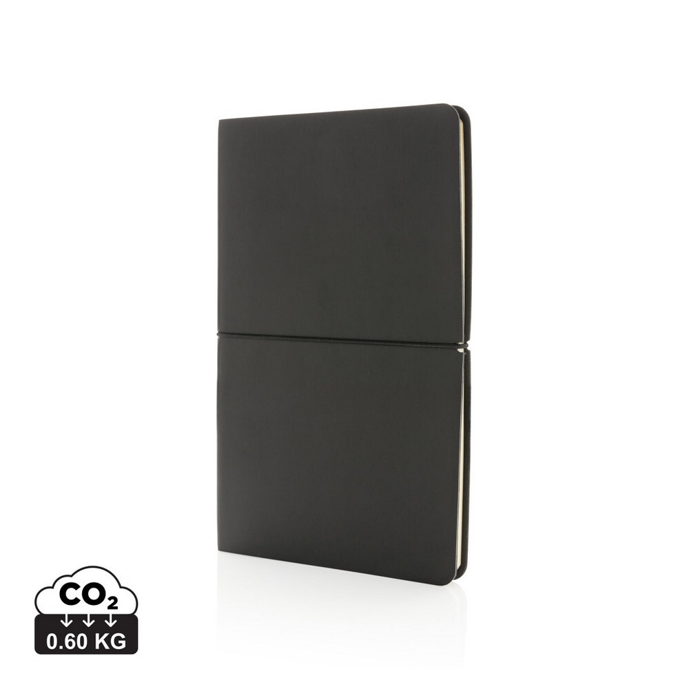 Notatnik A5 (96 kremowych kartek 80 g/m2 w linie), elastyczna opaska do zamykania, okładka z PU