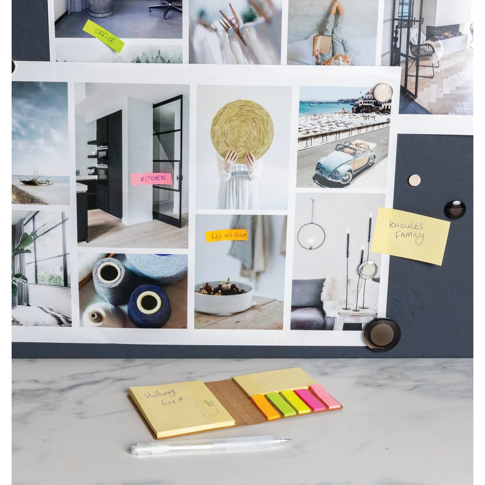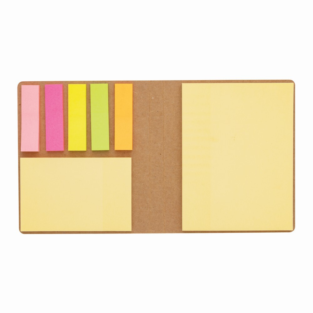 Zestaw do notatek, karteczki samoprzylepne, okładka z papieru kraftowego o gramaturze 300 g/m2, wewnątrz bloczek większych karteczek 50 szt., oraz 4 małe bloczki i jeden średni zawierające 30 kartek każdy