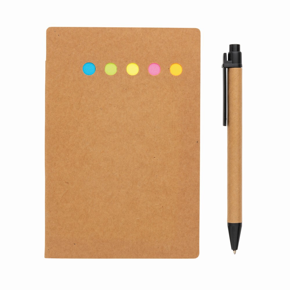 Zestaw do notatek A6, karteczki samoprzylepne, długopis / Brązowy