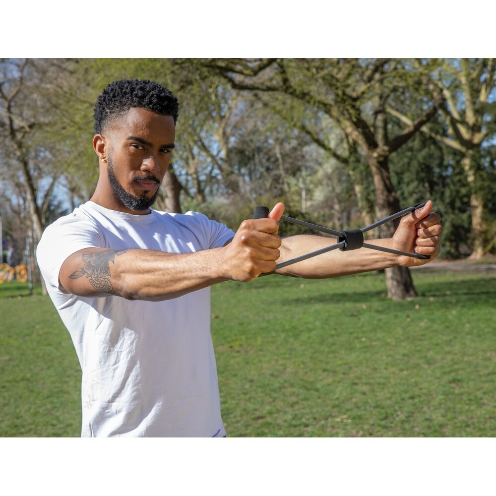 Guma oporowa do ćwiczeń w kształcie cyfry 8, kompaktowy rozmiar, etui oraz instrukcja z ćwiczeniami w komplecie