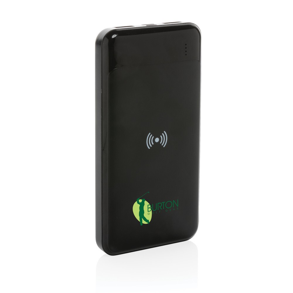Power bank 8000 mAh, ładowarka bezprzewodowa 5W, w pełni naładowany, wbudowany akumulator litowo polimerowy klasy A pozwala na naładowanie telefonu do 4 razy, obudowa wykonana z ABS pochodzącego z recyklingu, posiadają certyfikat RCS (Recycled Claim Standard), który jest stosowany gdy produkt jest wykonany częściowo lub w całości z materiałów pochodzących z recyklingu, bezprzewodowe ładowanie jest kompatybilne ze wszystkimi urządzeniami posiadającymi możliwość ładowania indukcyjnego, wejście typu C 5V/2A, wejście micro USB 5V/2A, wyjście bezprzewodowe 5W, 2 x wyjście USB 5V/2A, kabel z TPE z recyklingu w komplecie, nie zawiera PVC