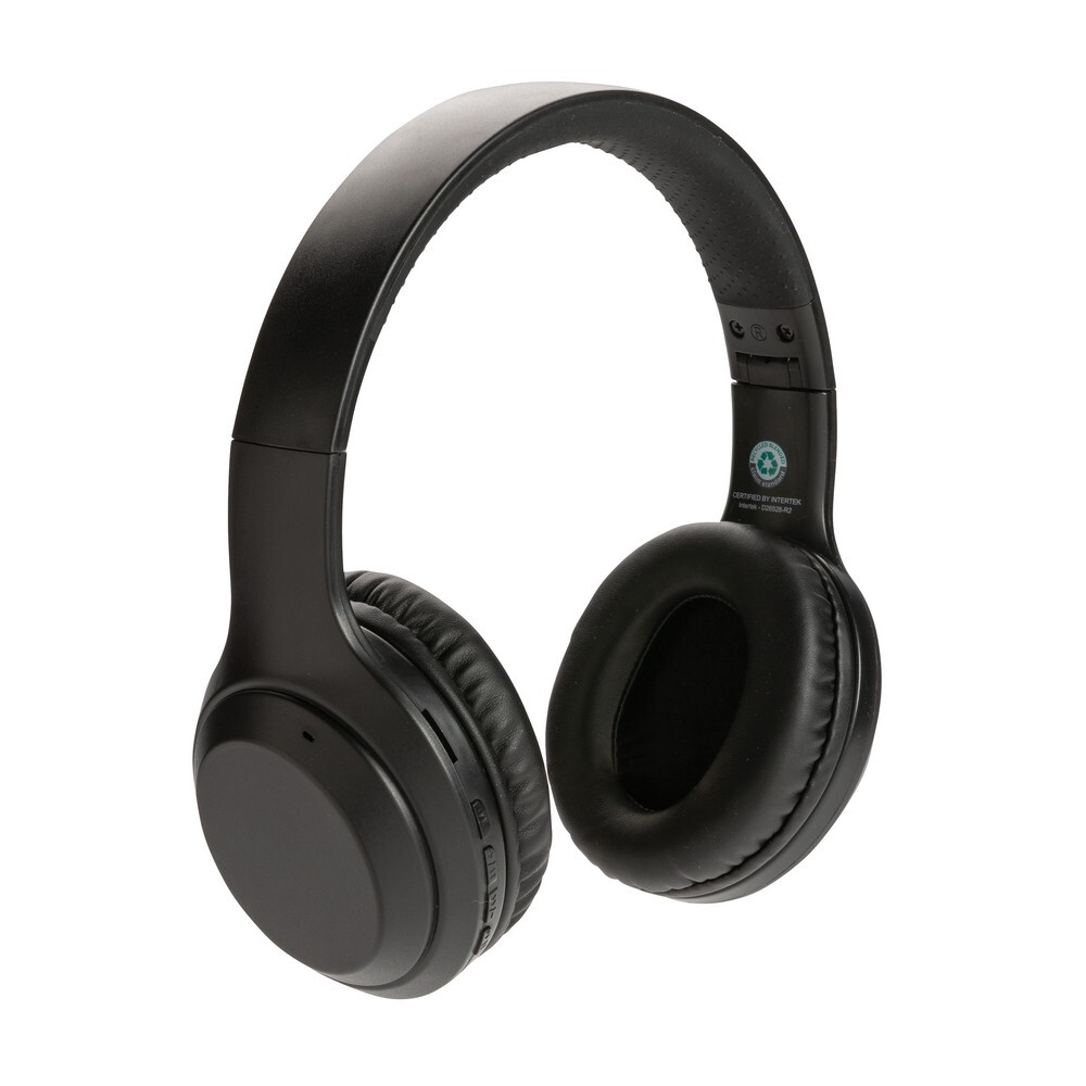 Słuchawki bezprzewodowe, składane, funkcja odbierania połączeń, wbudowany mikrofon, obudowa wykonana z ABS pochodzącego z recyklingu, posiadają certyfikat RCS (Recycled Claim Standard), który jest stosowany gdy produkt jest wykonany częściowo lub w całości z materiałów pochodzących z recyklingu, akumulator o pojemności 200 mAh umożliwia odtwarzanie muzyki do 6 godzin, ponowne ładowanie w 1,5 godziny, zasięg do 10 m, pokrowiec w komplecie, kabel w komplecie, nie zawiera PVC