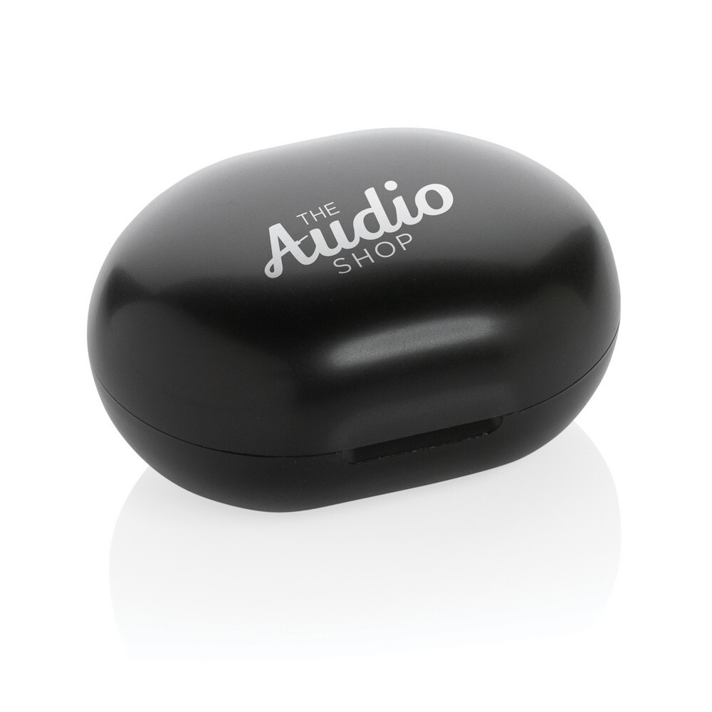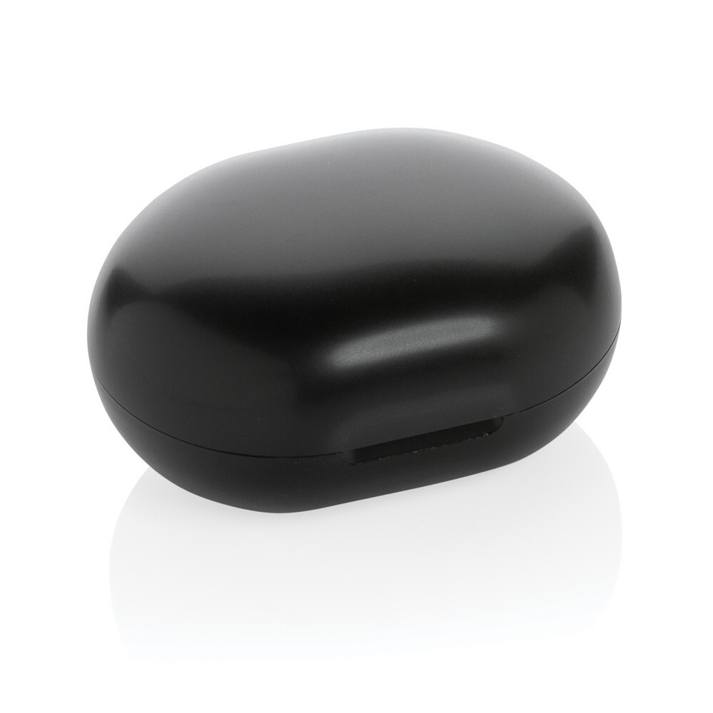 Bezprzewodowe słuchawki douszne TWS (True Wireless Stereo), BT 5.0, wykonane z ABS pochodzącego z recyklingu, posiadają certyfikat RCS (Recycled Claim Standard), który jest stosowany gdy produkt jest wykonany częściowo lub w całości z materiałów pochodzących z recyklingu, funkcja odbierania połączeń, etui z wbudowanym akumulatorem 300 mAh pełniące funkcję stacji ładującej w komplecie, akumulator słuchawek o pojemności 40 mAh umożliwia odtwarzanie muzyki do 4 godzin, ponowne naładowanie za pomocą etui w 1,5 godziny, zasięg do 10 metrów, kabel wykonany z TPE z recyklingu bez dodatku PVC w komplecie, nie zawiera PVC