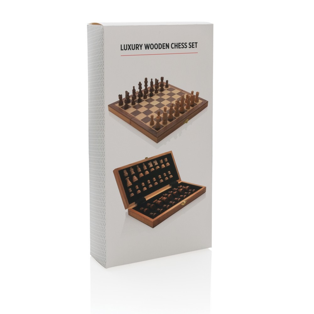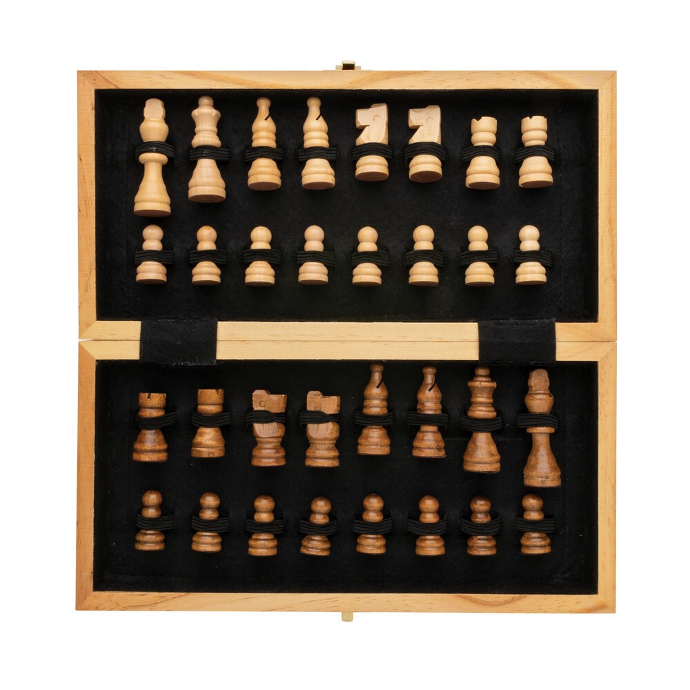Szachy, wykonane z drewna sosnowego, 32 figury wewnątrz składanej szachownicy