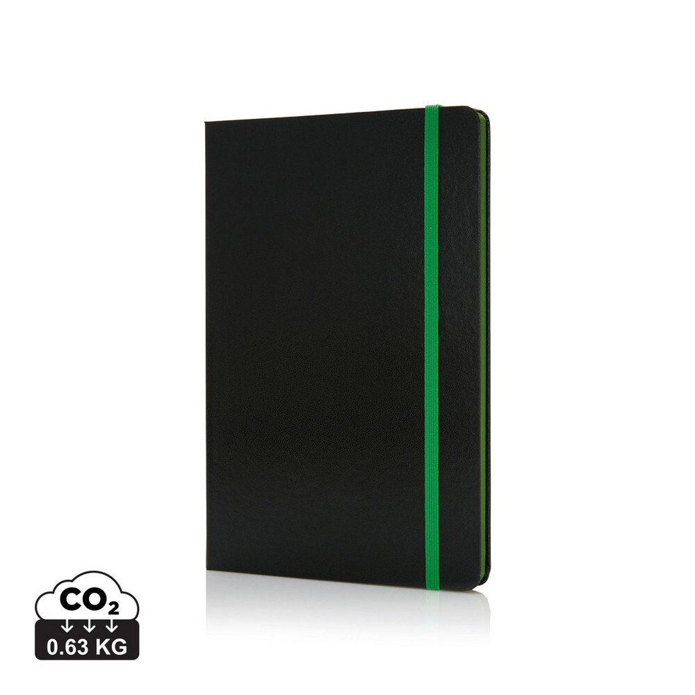 Notatnik A5 (80 kartek 80 g/m2 w linie), twarda okładka, boki stron w kolorze elastycznej opaski do zamykania