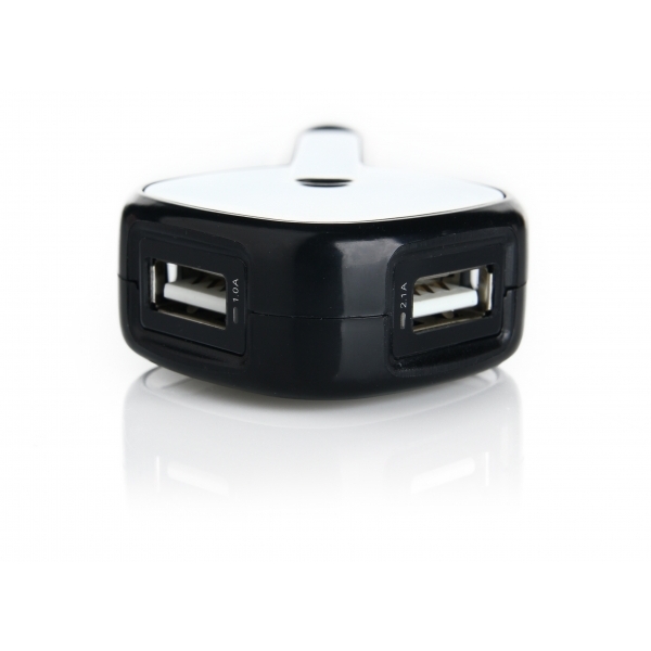 Wysokiej klasy ładowarka samochodowa i praktyczny gadżet dla każdego kierowcy wyposażona w dwa niezależne porty USB o mocy 2.1A & 1A. Produkt wykonany jest w najnowszej technologii z wysokiej jakości materiałów. Bardzo dobra jakość za niewielkie pieniądze gwarantuje zadowolenie z zakupu, a sama ładowarka zapewnia szybkie i bezpieczne ładowanie dwóch urządzeń jednocześnie. Specyfikacja: Wejście: 12-24V Wyjście: 5V/1A-2.1A