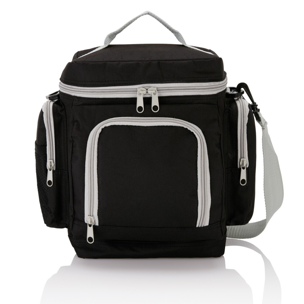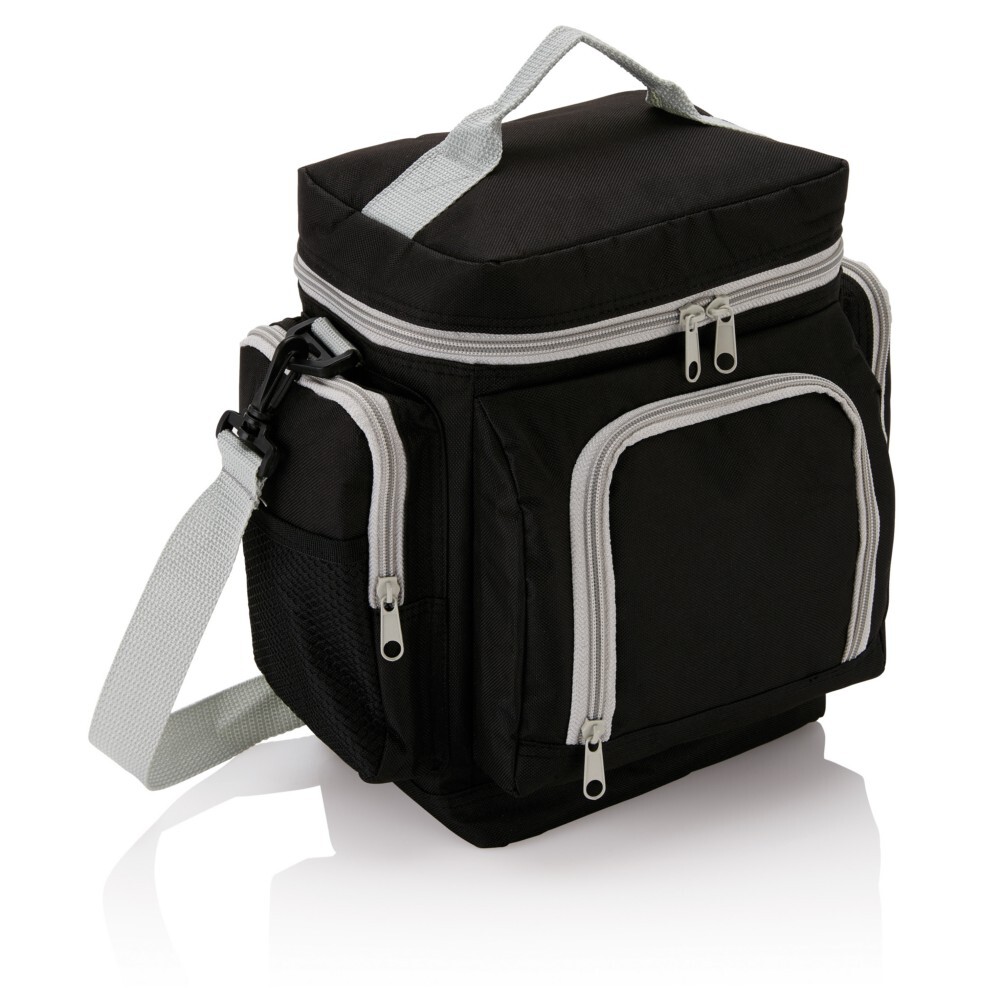 Torba termoizolacyjna, wykonana z poliestru 600D, posiada wiele przegródek, regulowany pasek na ramię, nie zawiera PVC