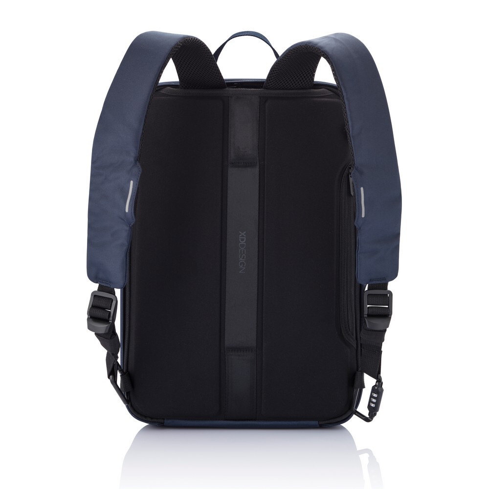 Torba, plecak chroniący przed kieszonkowcami Bobby Bizz, wykonany z wysokiej jakości poliestru, odblaskowe nadruki zwiększające bezpieczeństwo w nocy, wewnątrz usztywnione przegrody na laptopa 15,6", tablet do 10", specjalna metalowa konstrukcja chroniąca przedmioty i zachowująca kształt plecaka, możliwość używania plecaka również jako torby, zintegrowana kłódka umożliwiająca przypięcie plecaka do stałego obiektu, pasek do zamocowania na walizce w komplecie, wzór zastrzeżony®