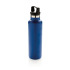 Próżniowa butelka sportowa 600 ml, proszkowa powłoka, podwójne ścianki, nakrętka 2 w 1 z sitkiem do zaparzania herbaty lub dodawania do wody owoców i ziół, ustnik do sączenia napojów i dodawania kostek lodu, wewnątrz stal nierdzewna 304, stal nierdzewna 201 na zewnątrz, utrzymuje temperaturę ciepłych napojów do 5 godzin oraz zimnych do 15 godzin
