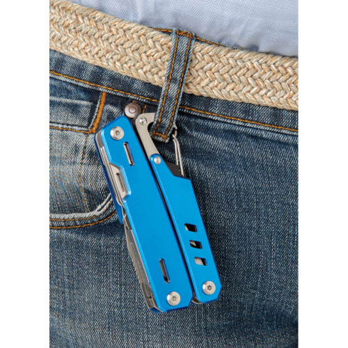 Narzędzie wielofunkcyjne z karabińczykiem Solid, 11 el. / Niebieski